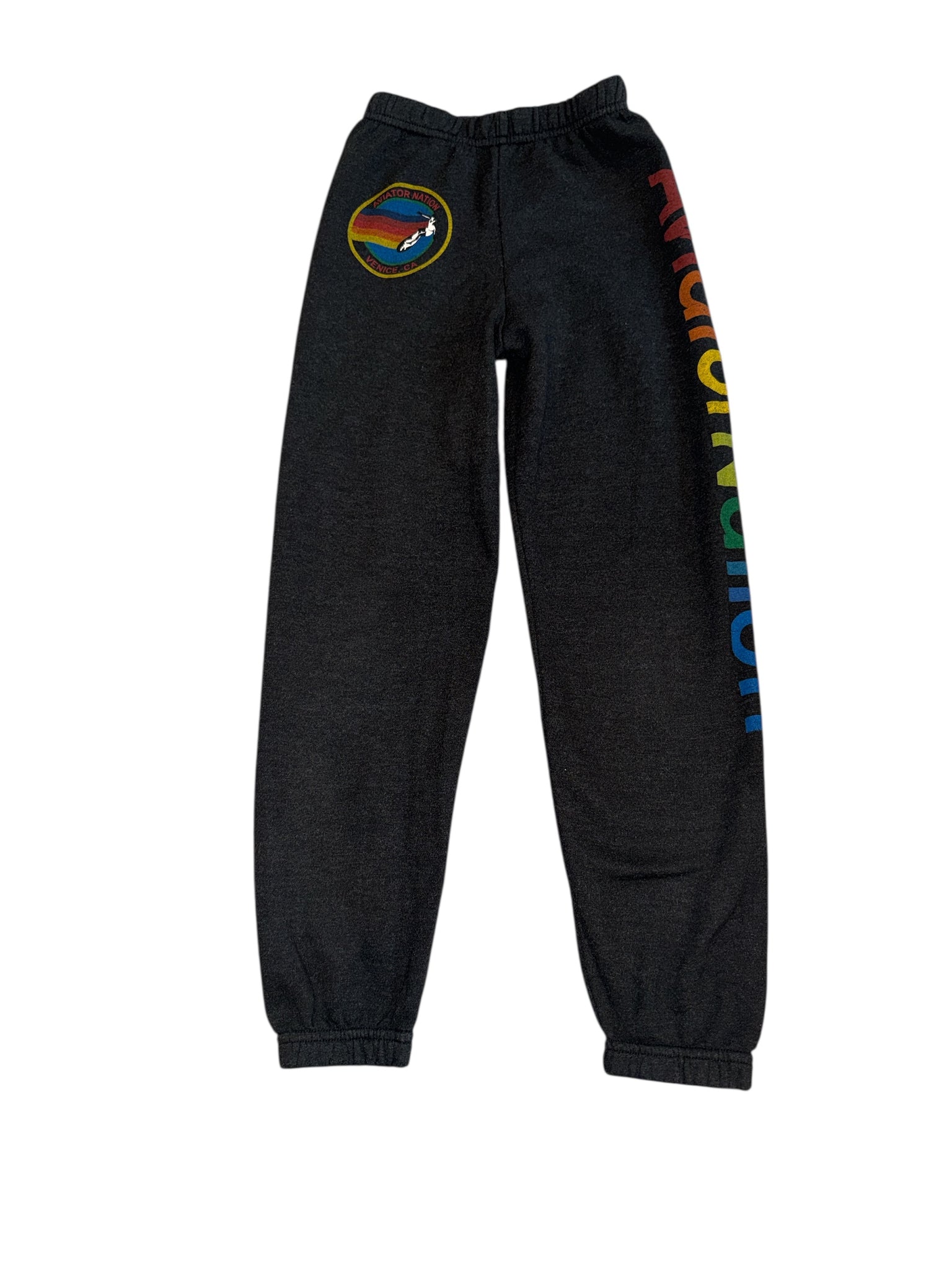 Aviator Nation unisex super soft charcoal sweatpants, with rainbow logos and embroidery, size 12.
