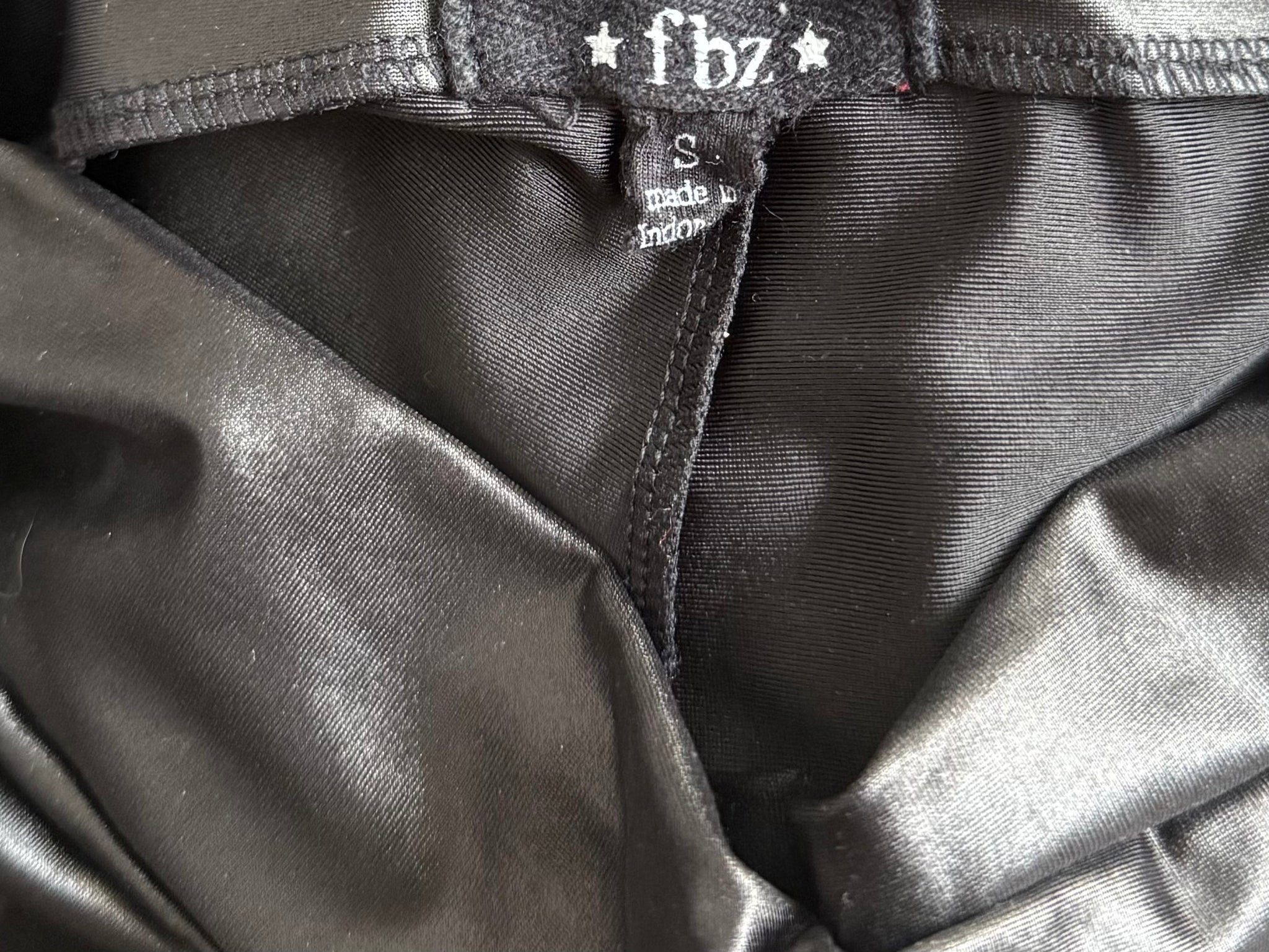 Flowers By Zoe black stretchy high shine girls flare pants with crossover waist detail, size S(7-8).