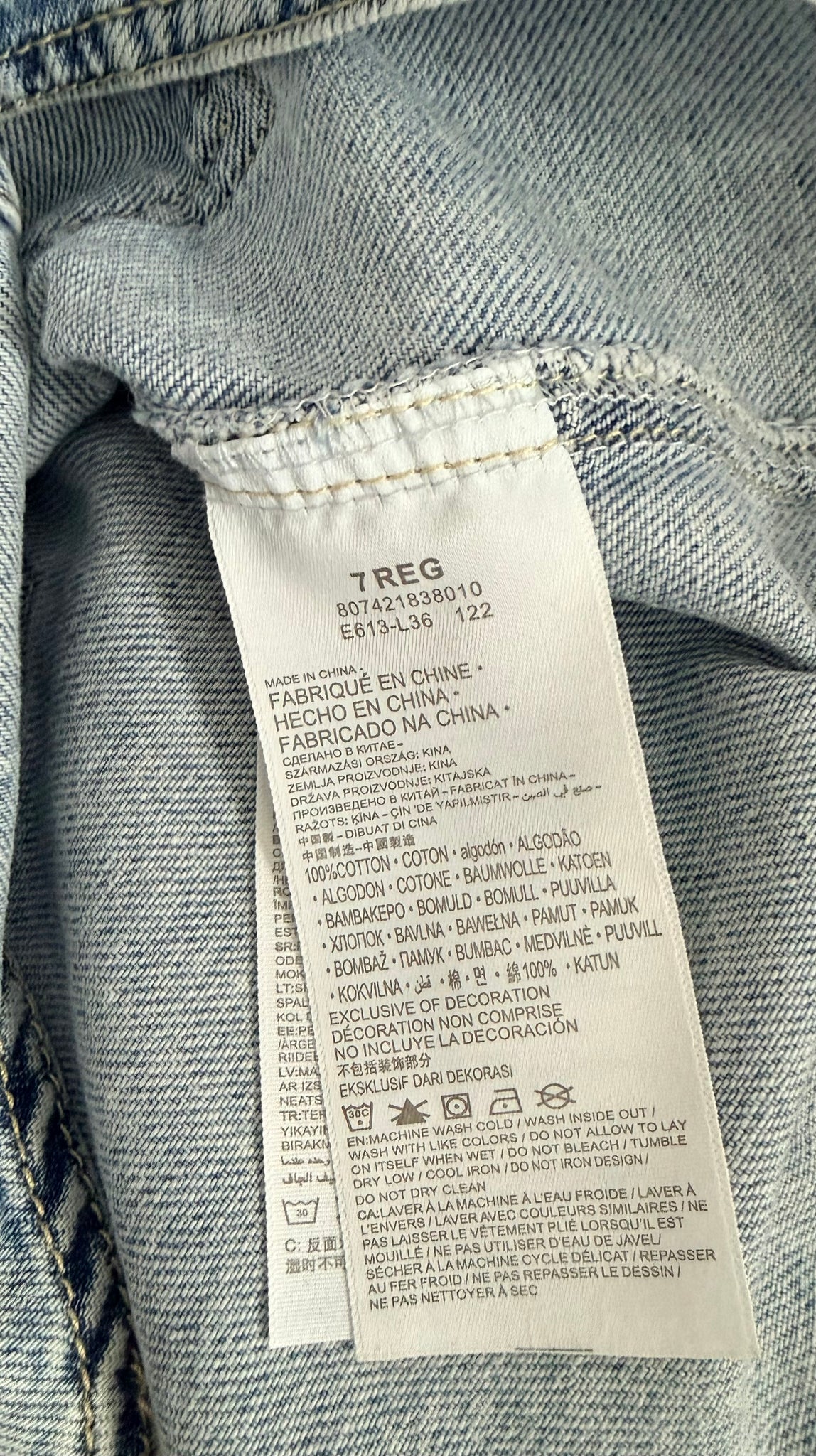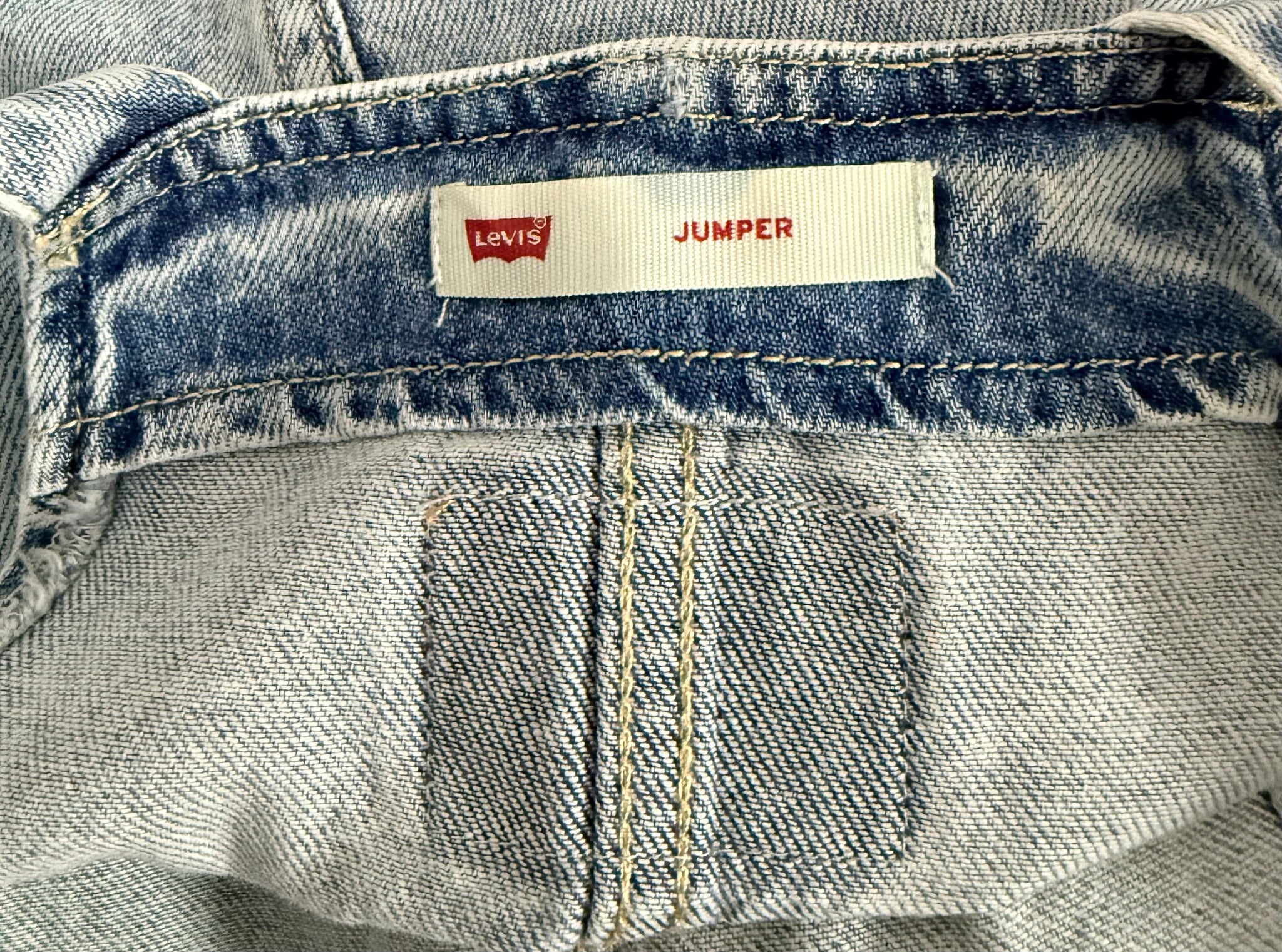 Levi’s girls soft light wash denim overall jumper dress with large front pockets, size 7 Reg.
