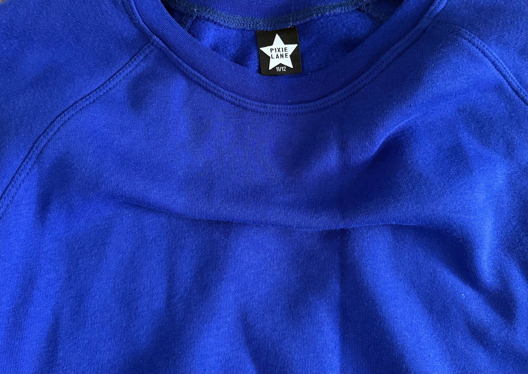 Pixie Lane girls 2pc bright royal blue sweatsuit - pullover cropped long sleeve top, with tapered jogger sweats with white drawstrings, size 11-12.