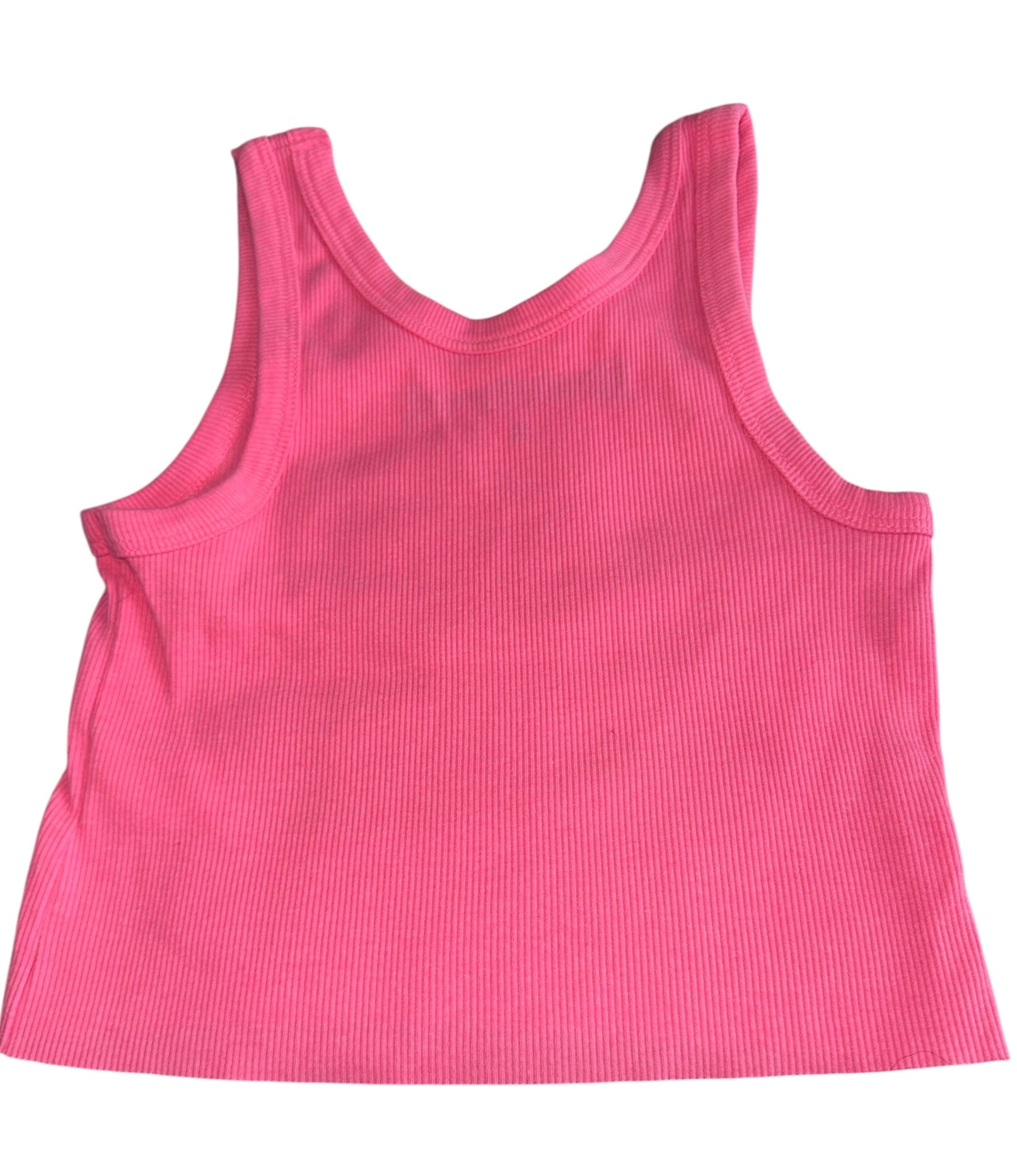 Rowdy Sprout girls hot pink ribbed cropped tank top with Beach Boys graphic on front, size 8.