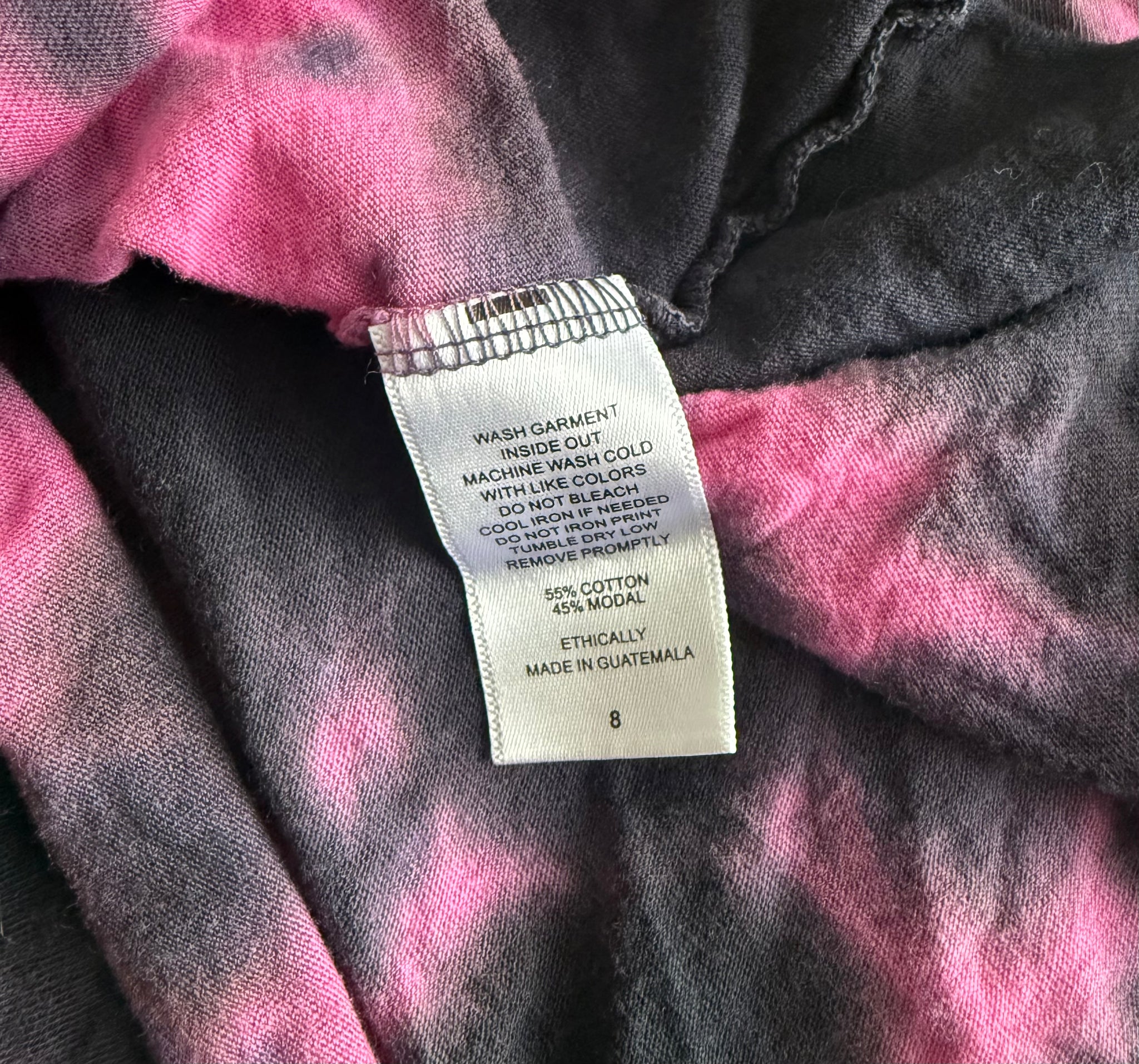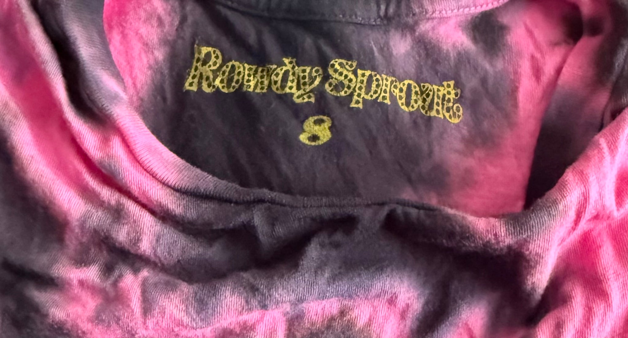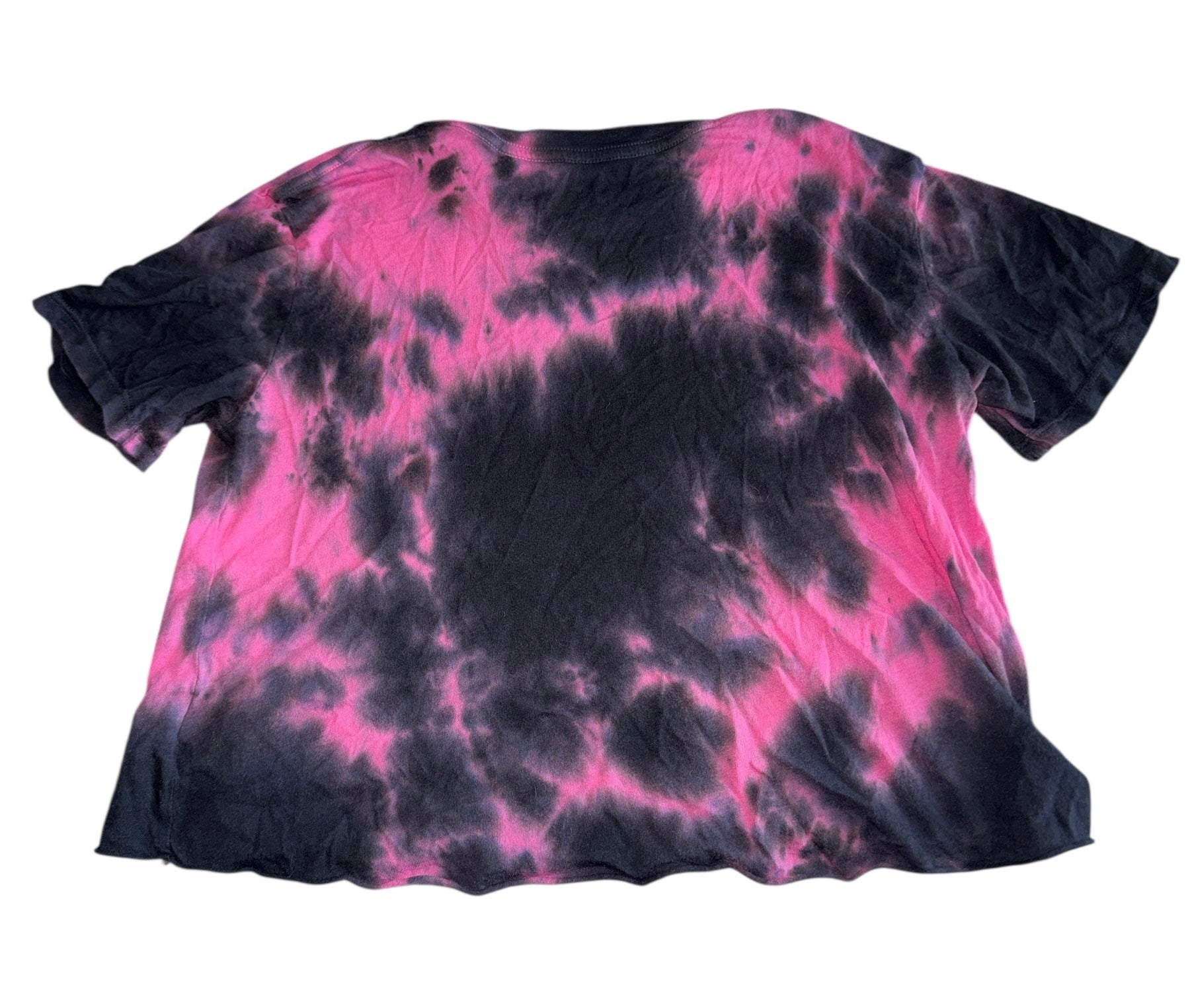 Rowdy Sprout girls hot pink and black tie dye cropped tee, size 8.