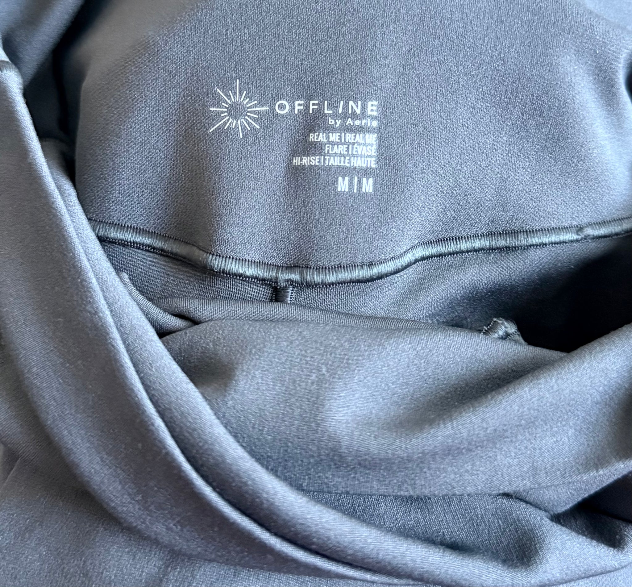 Aerie Offline women’s buttery soft Real Me high waisted flare with crossover detail, in charcoal gray size M.