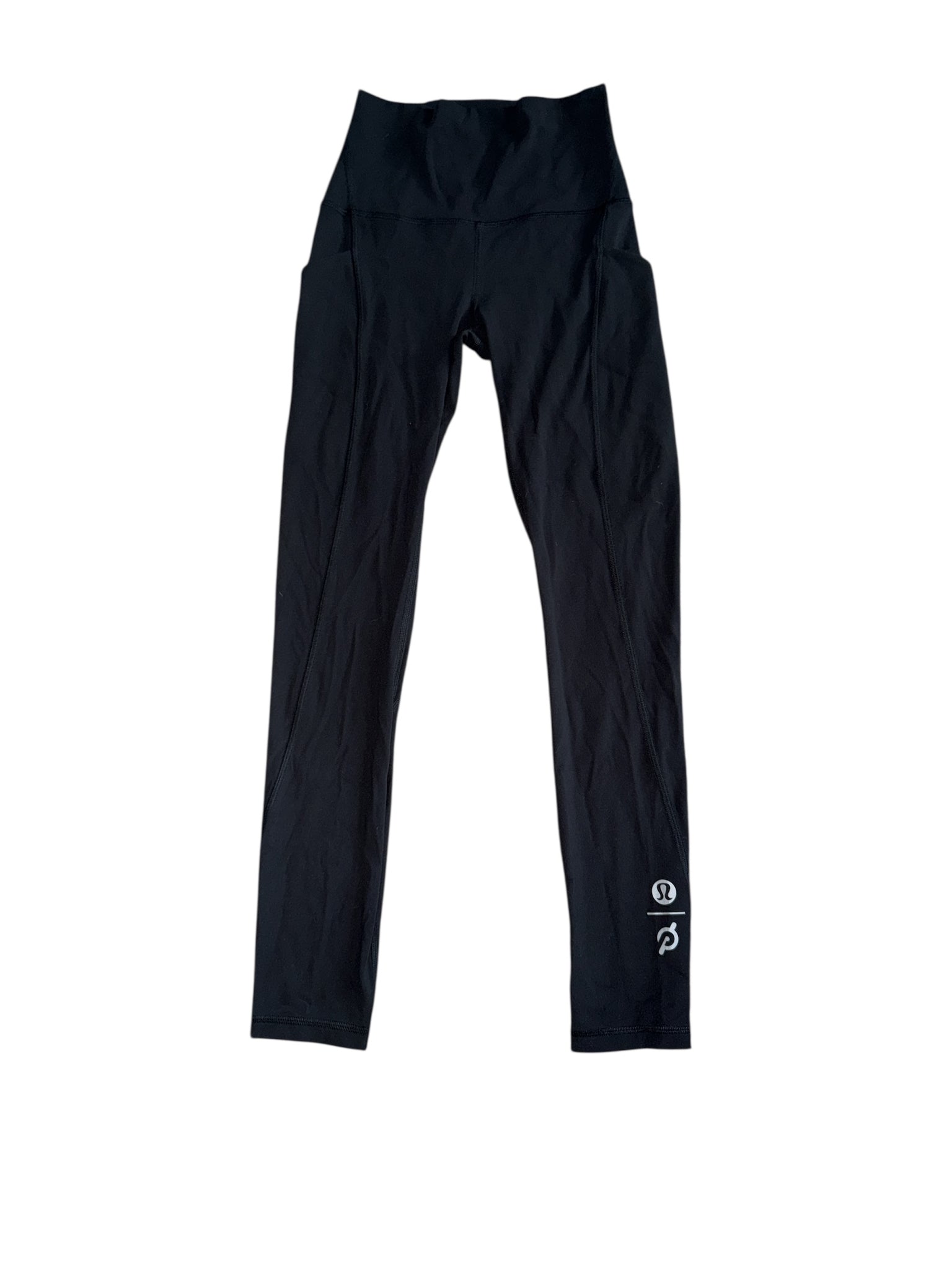Lululemon x Peloton women’s sleek black Align 7/8 length leggings with pockets, size 2.