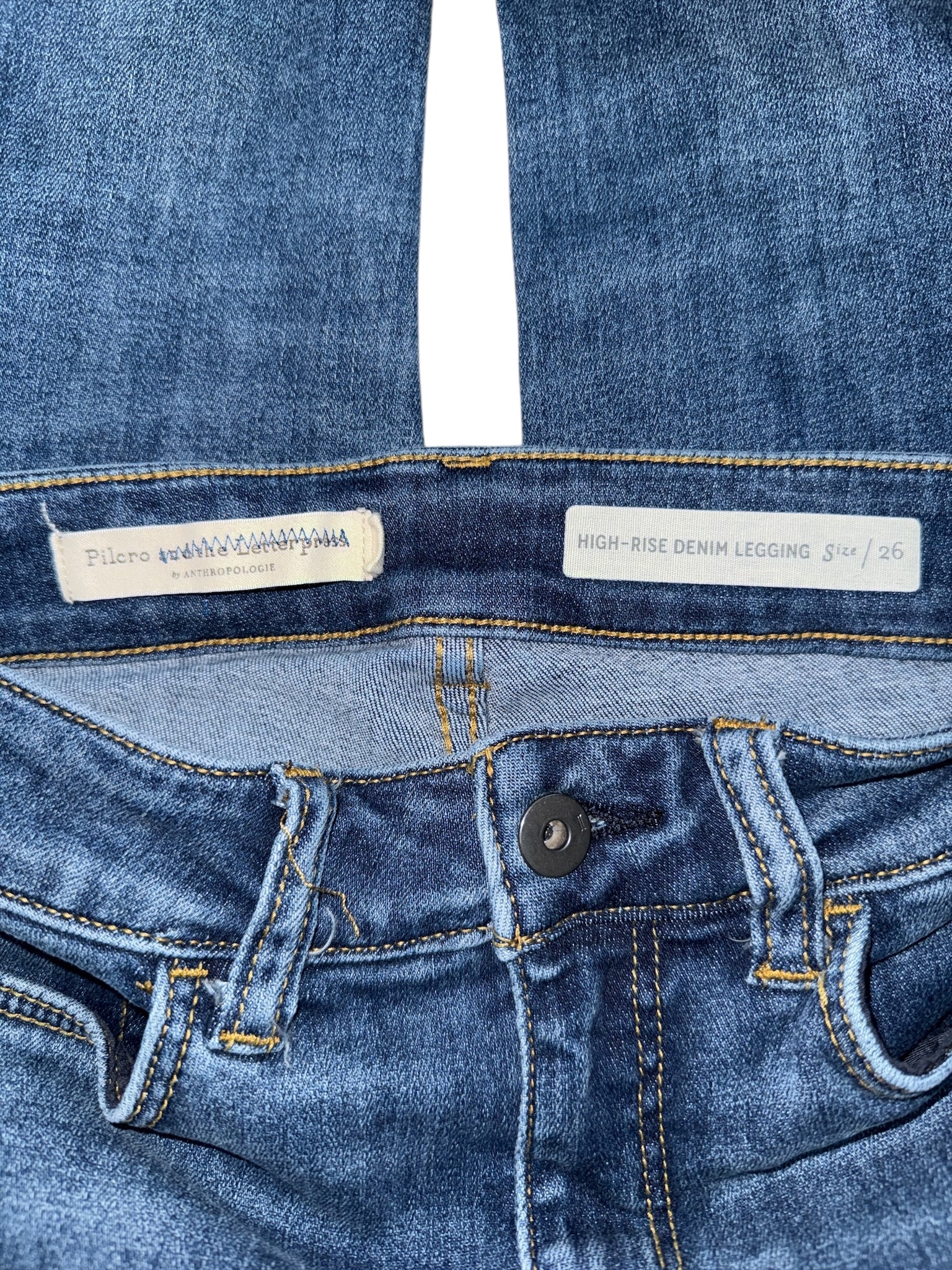 Pilcro and the Letterpress by Anthropologie women’s extremely soft and stretchy high rise skinny denim leggings, size 26.