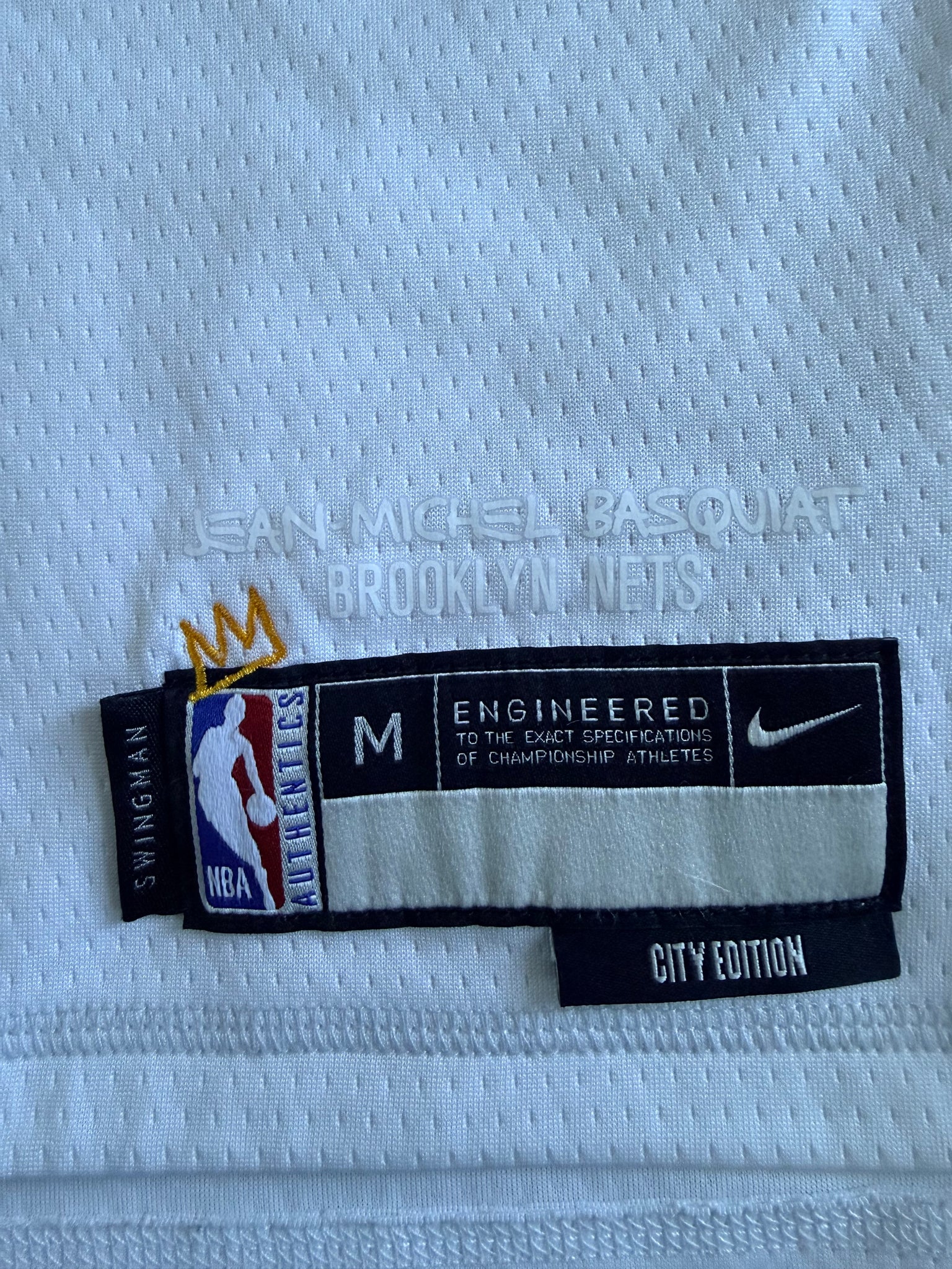Nike boys Dri Fit Kevin Durant #7 Brooklyn Nets City Edition Basketball Jersey in white, size Youth M(10-120)