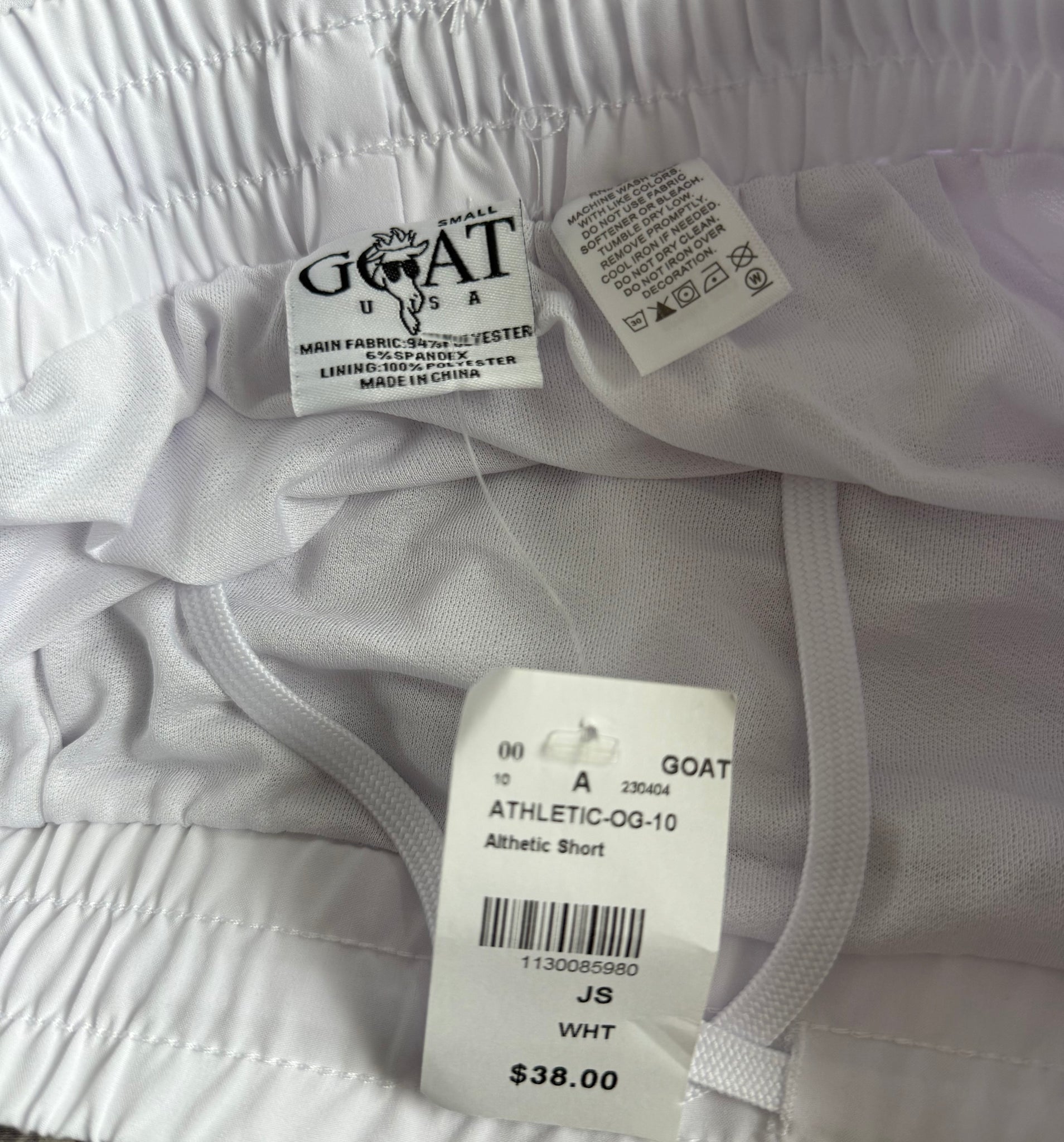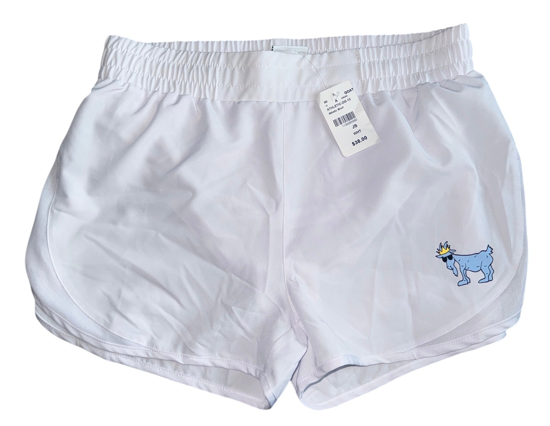 Goat USA women’s white, light and airy athletic shorts with mesh lining, size junior S.