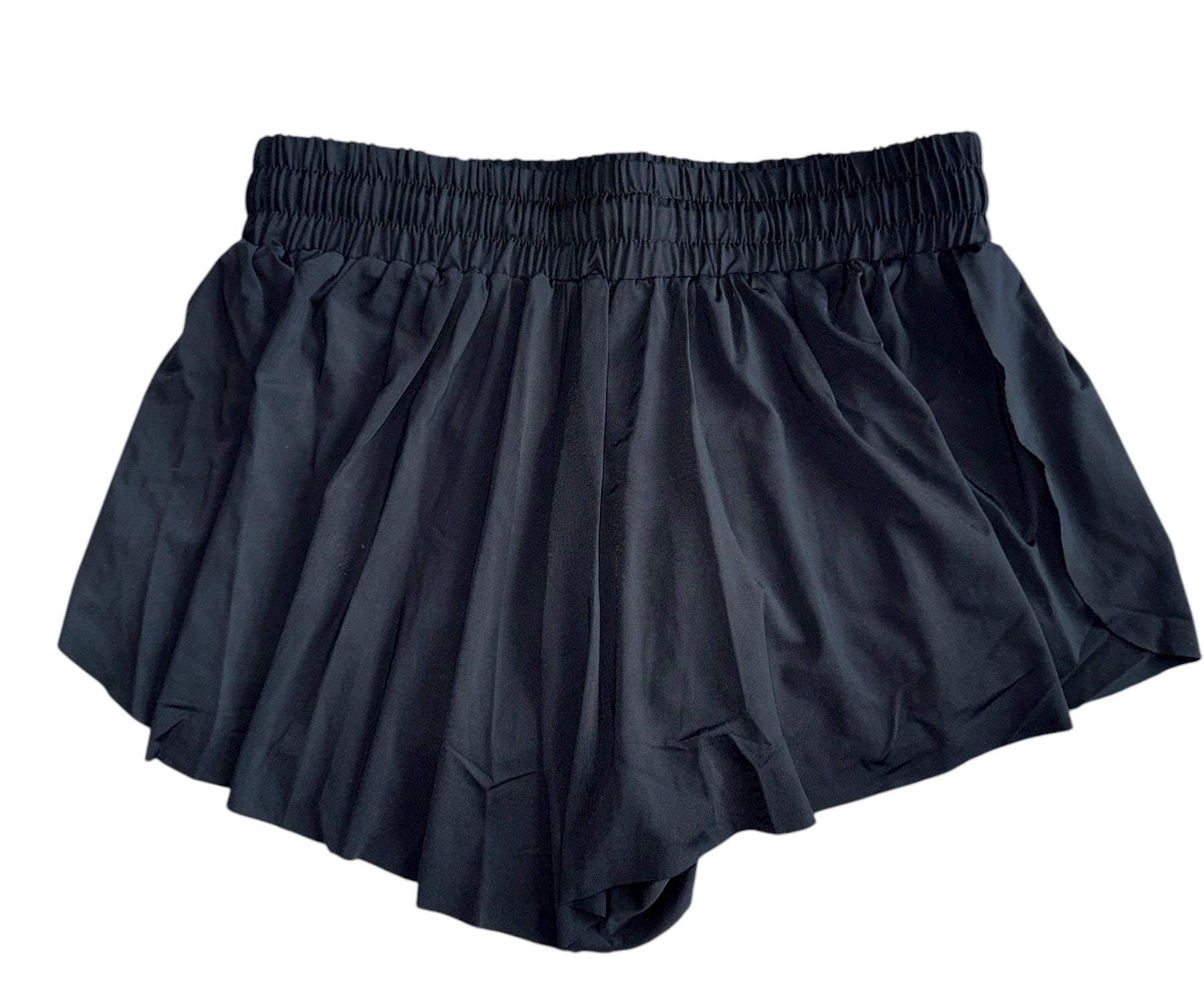 - 7.5” leg opening on spandex shorts underneath, open flowy outer layer