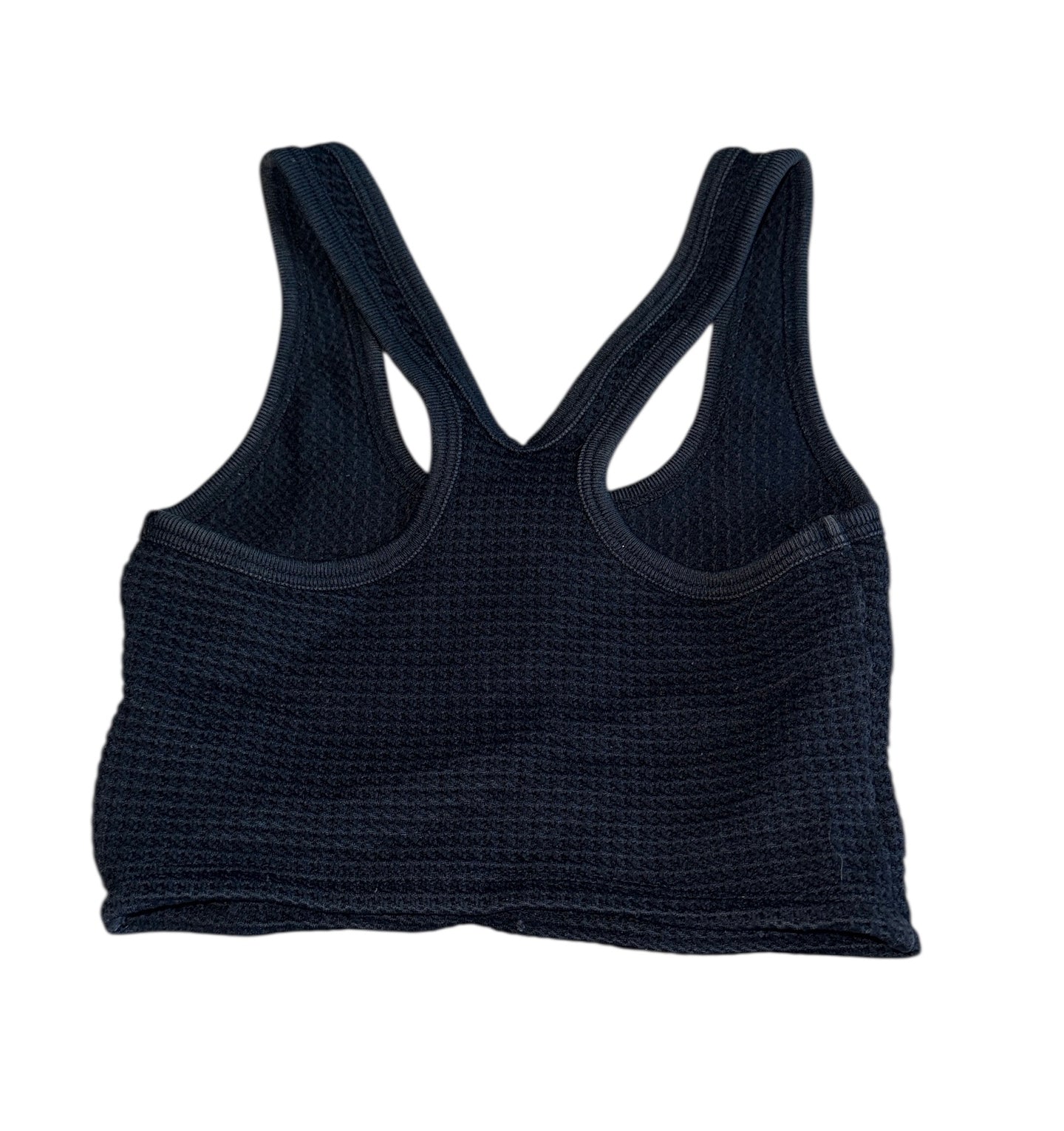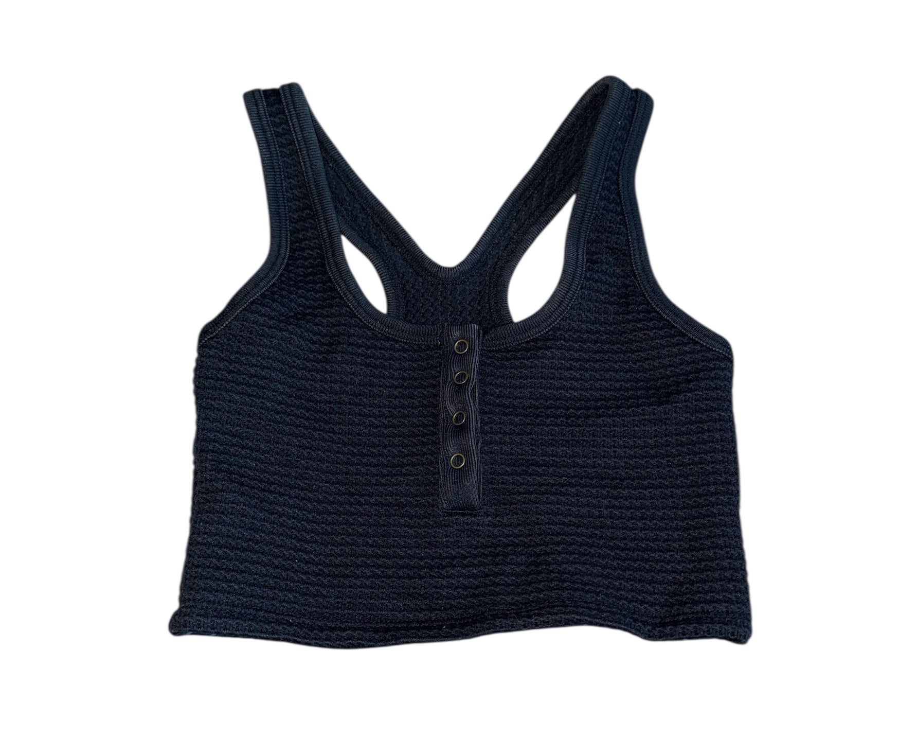 Katie J NYC girls washed black cropped racerback textured knit tank top, with snap henley neckline, size M(10).