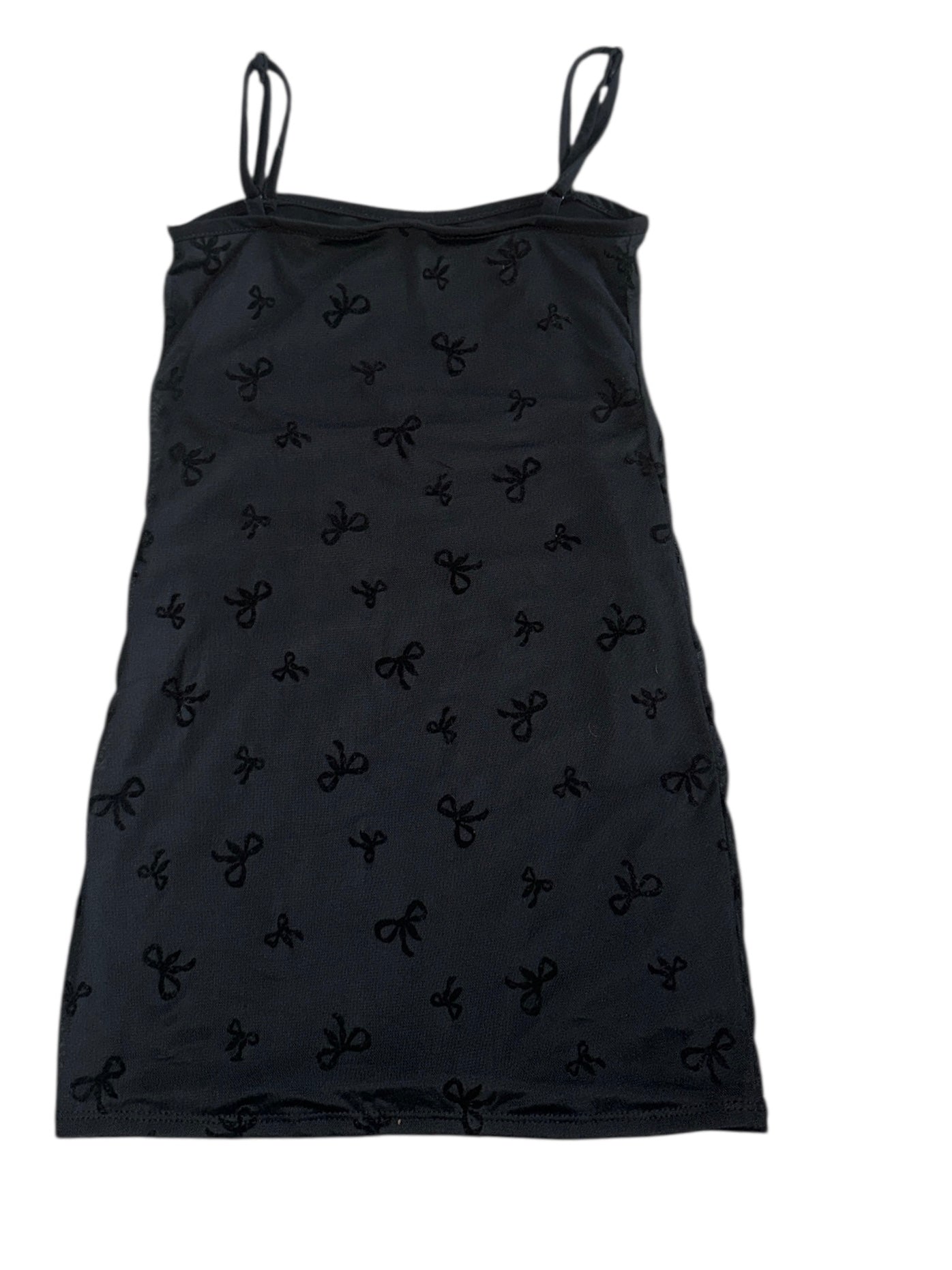 Cheryl Creations Kids black mesh mini dress with velvet bows and adjustable straps, size L(14).