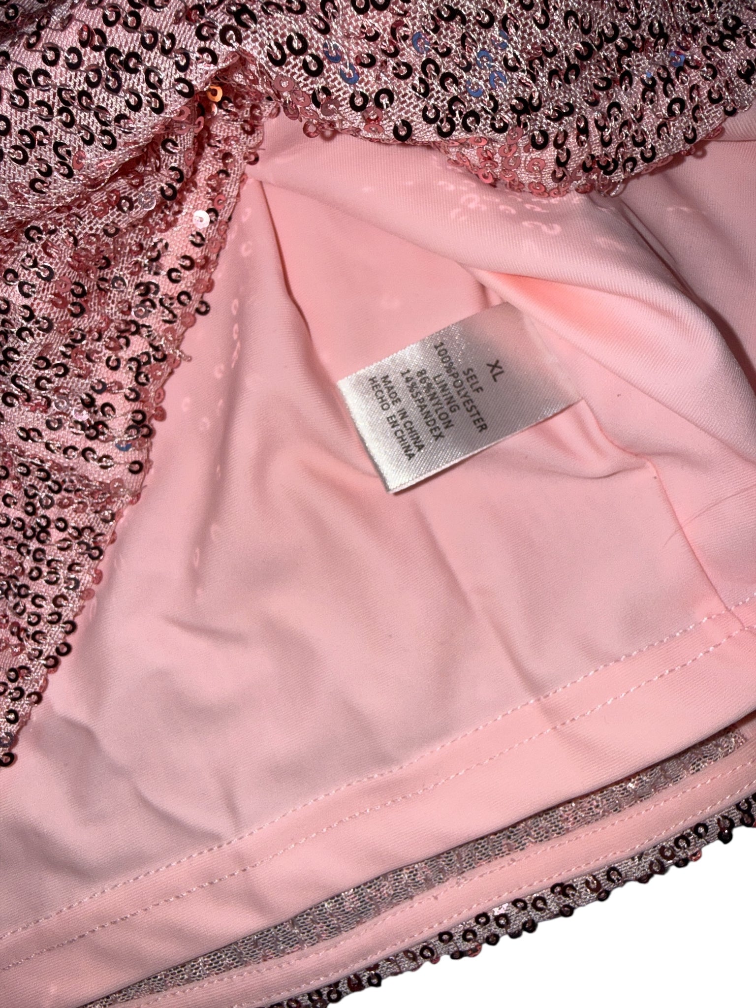 Theme girls light pink sequin one shoulder special occasion dress with side zip closure, fully-lined, size XL(16).