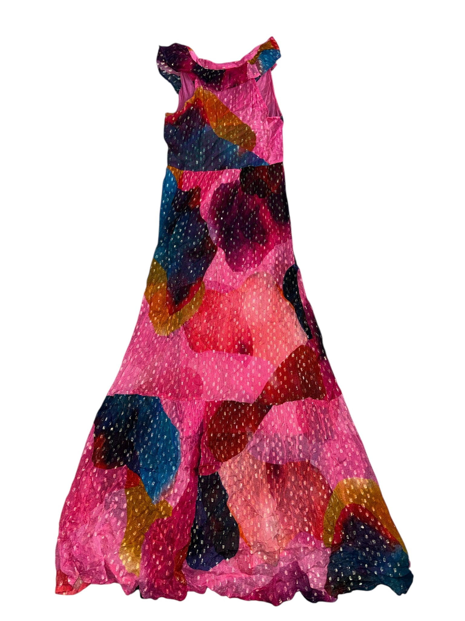 Oliphant women’s pink basel ruffle v-neck maxi dress, size XS.