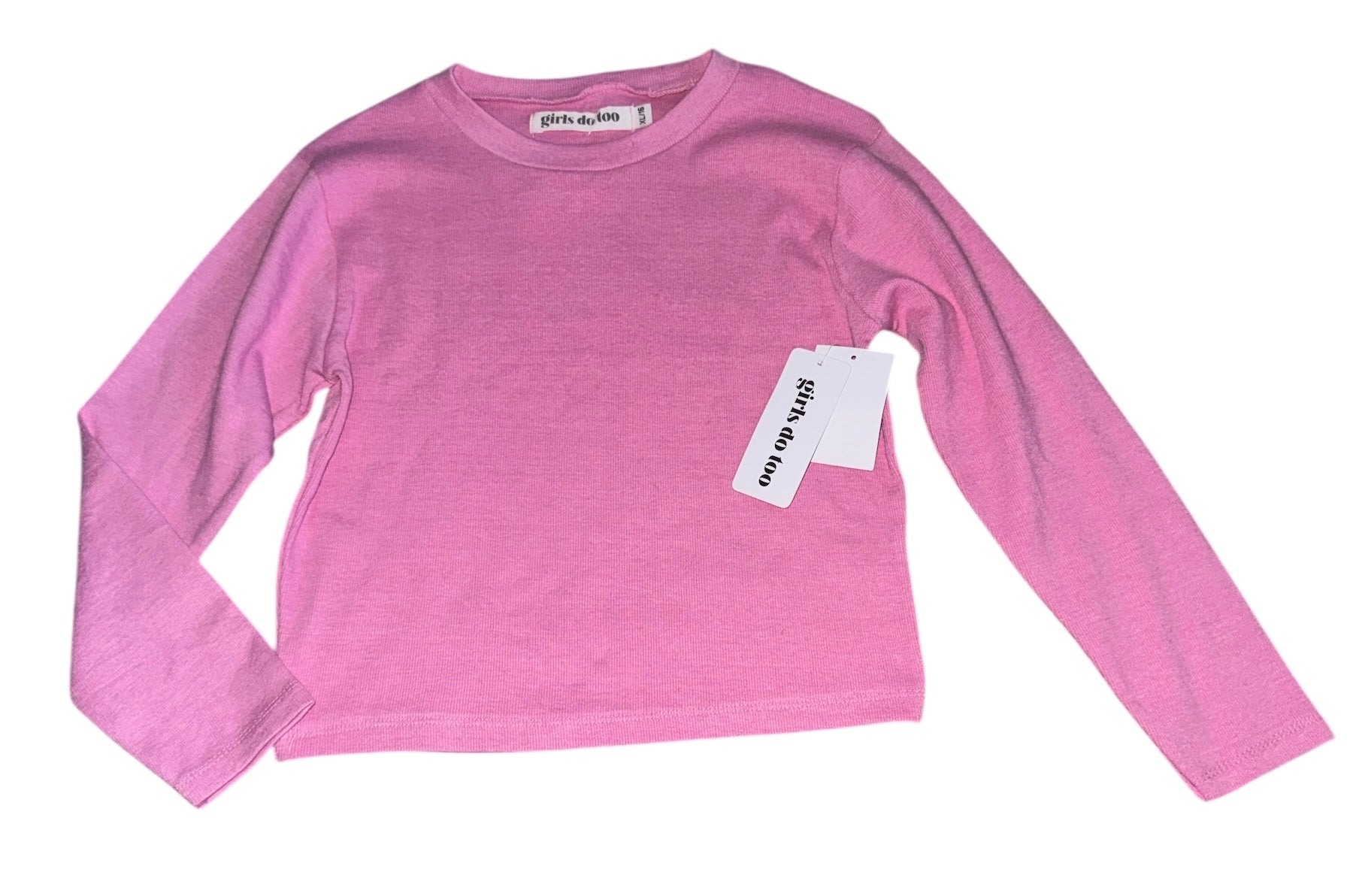 Girls Do Too soft stretchy solid pink long sleeve ribbed cropped tee, size XL(16).