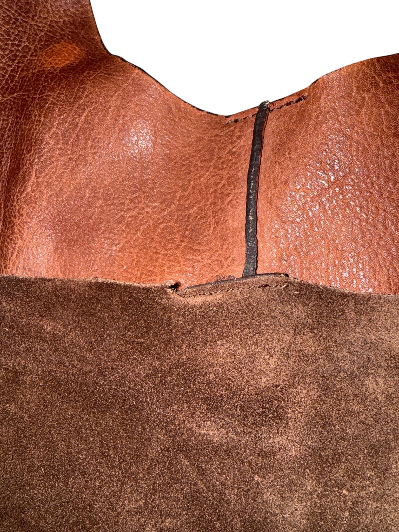 - Bag has some discolorations in the leather/suede and a tiny tear (shown in photos). Still plenty of life. Leather is naturally distressed as well.