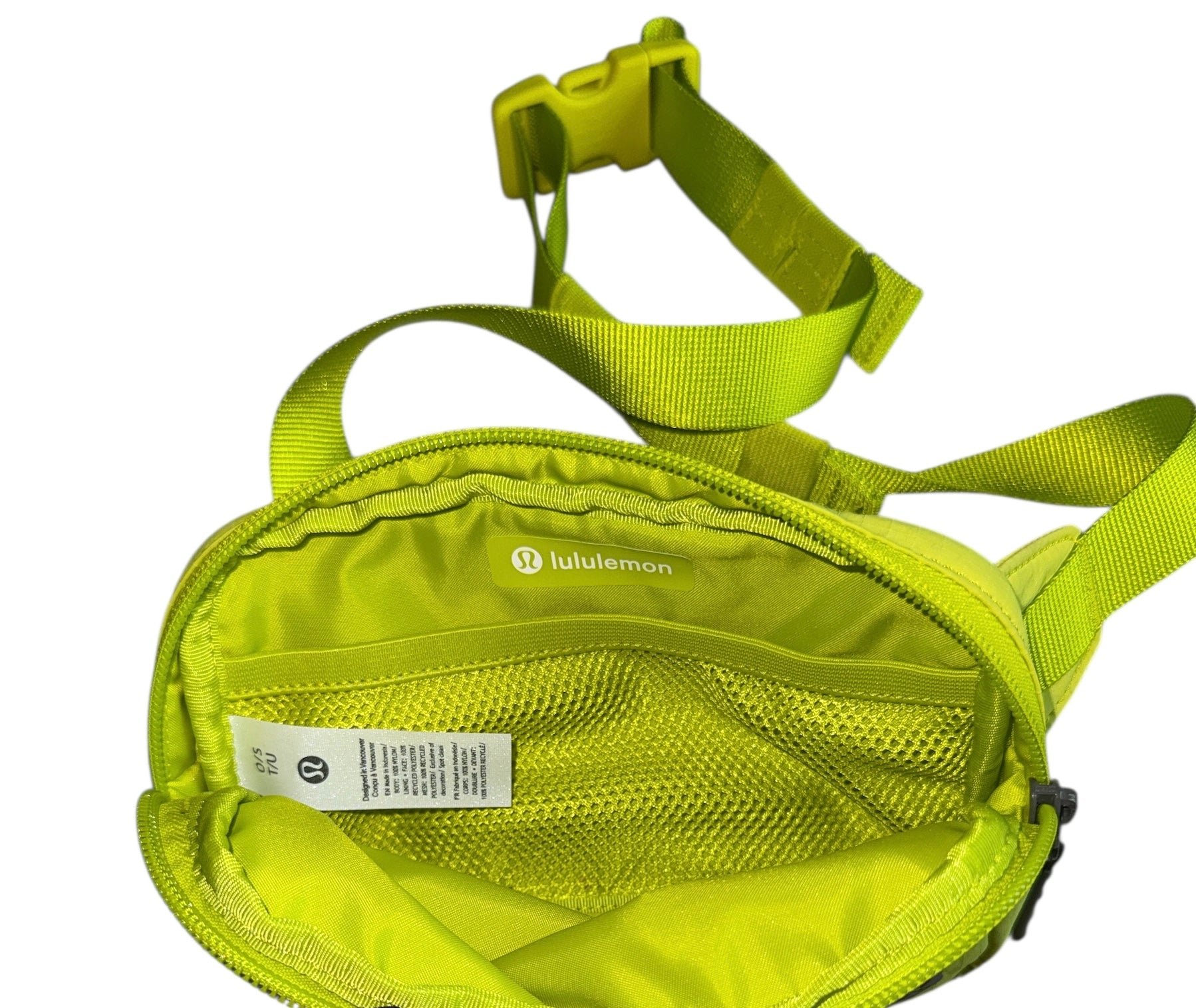 Authentic Lululemon Athletica mini size Everywhere Crossbody Bag in neon yellow/green with plastic hardware.  Features: water-repellent & abrasion resistant fabric, adjustable shoulder strap for comfortable carrying, can be used as belt bag or crossbody, inside pocket for small items, strap loops for keychains or clips!