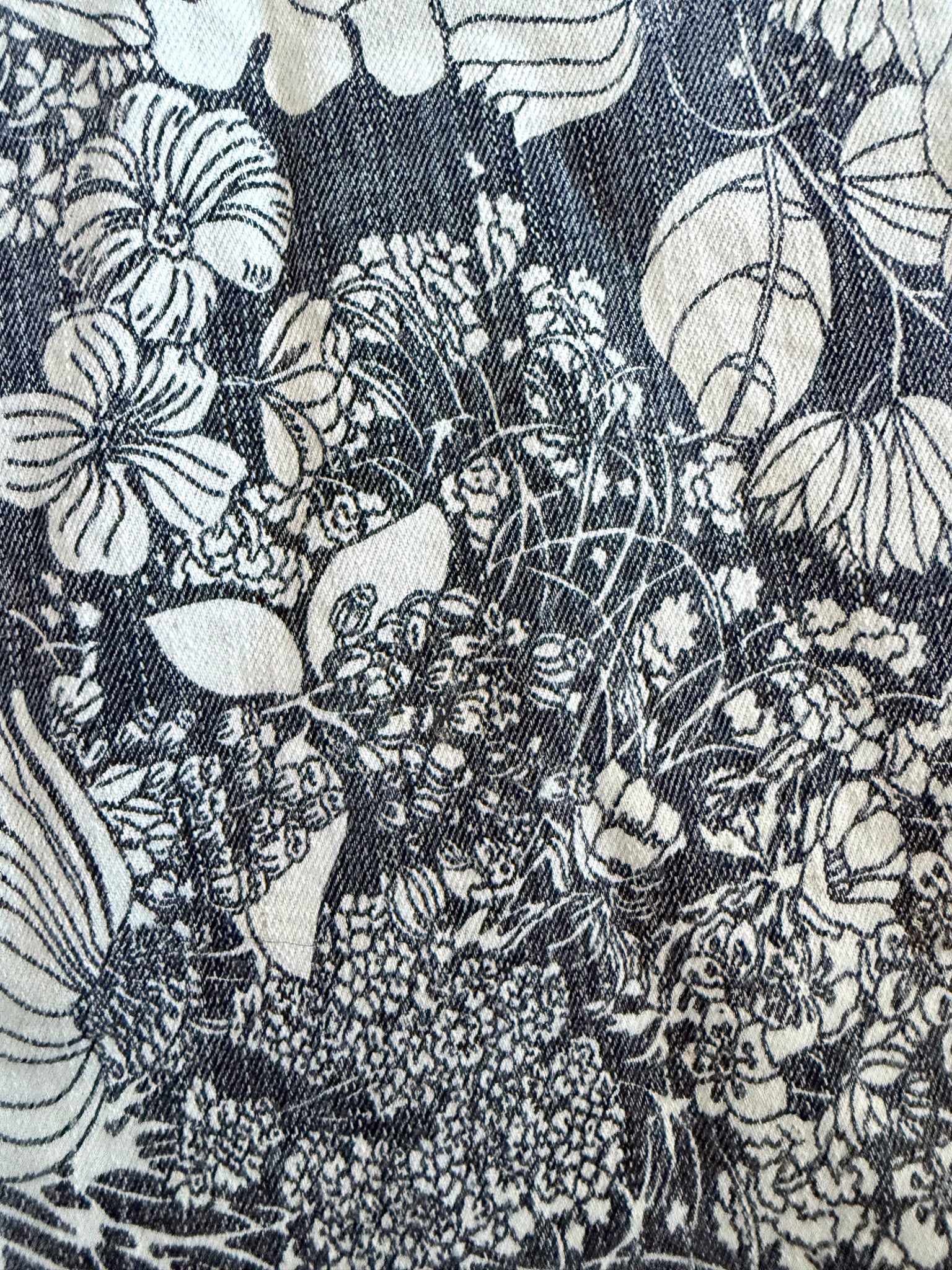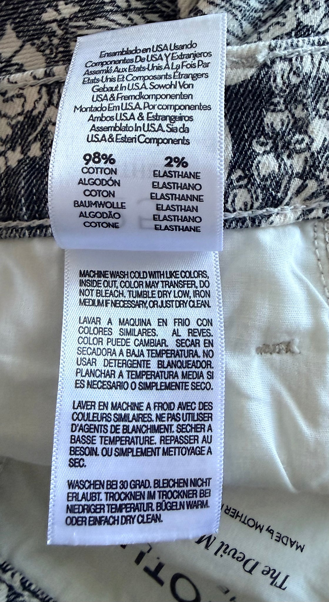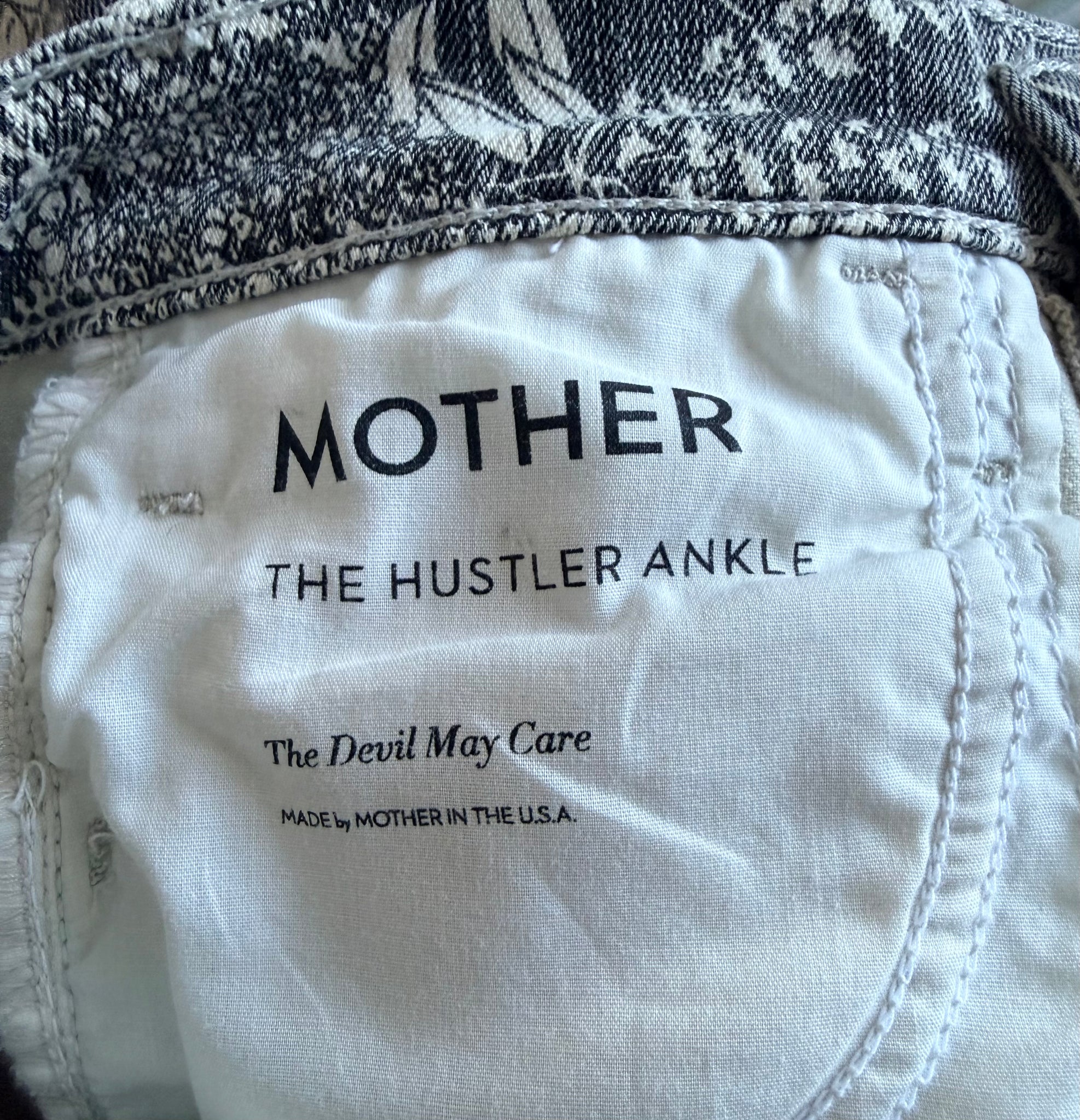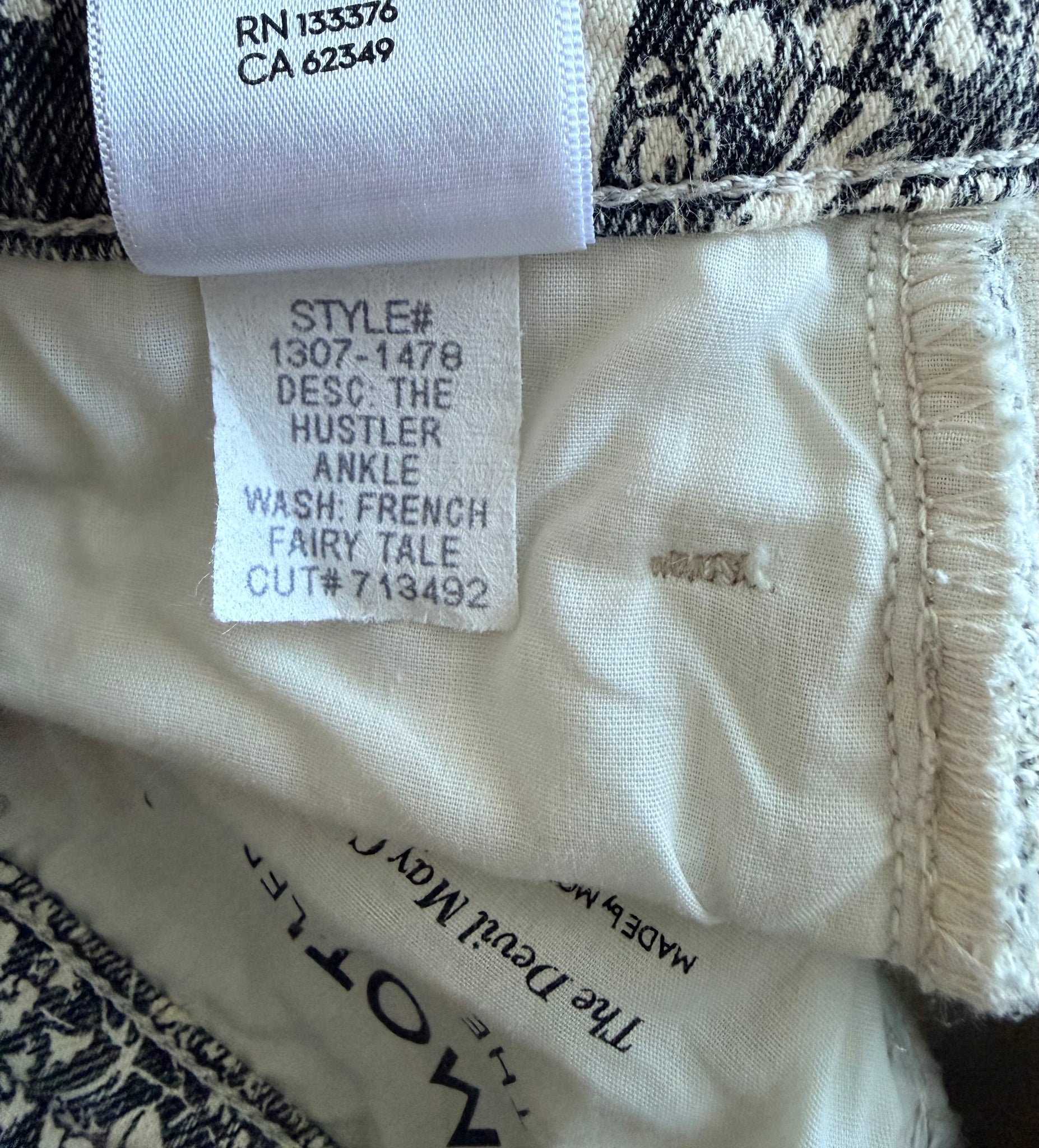 Mother Superior women’s Hustler cropped ankle flare jeans in ivory/gray(The Devil May Care wash) French Fairytale floral print, size 25.