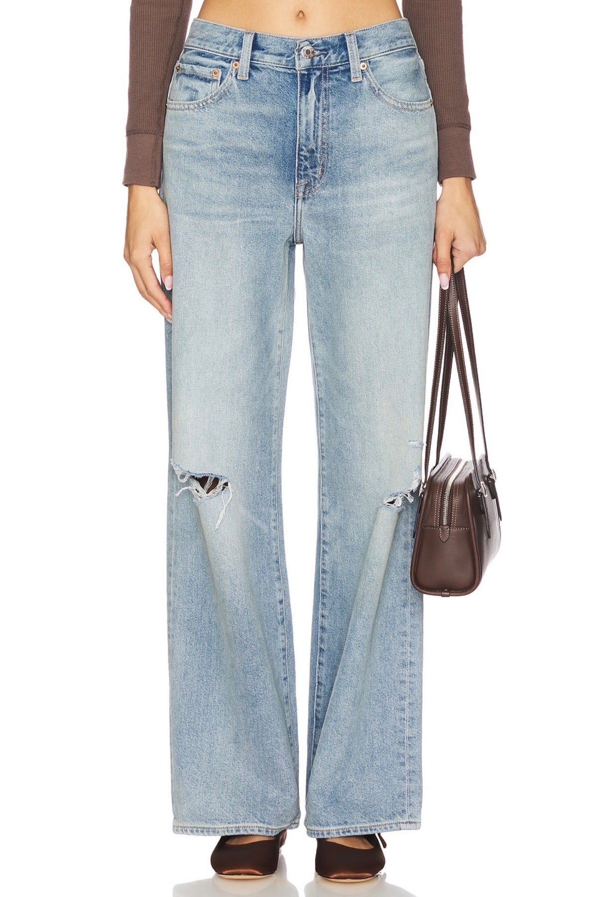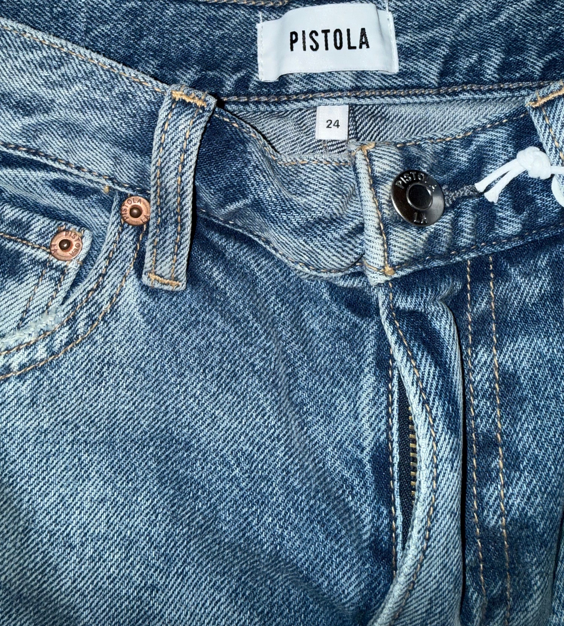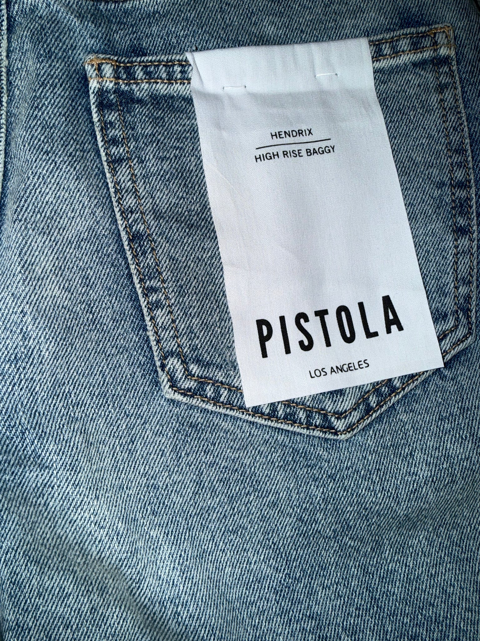 Pistola women’s light distressed (Apprentice distressed) wash Hendrix high rise baggy wide leg jeans, size 24.