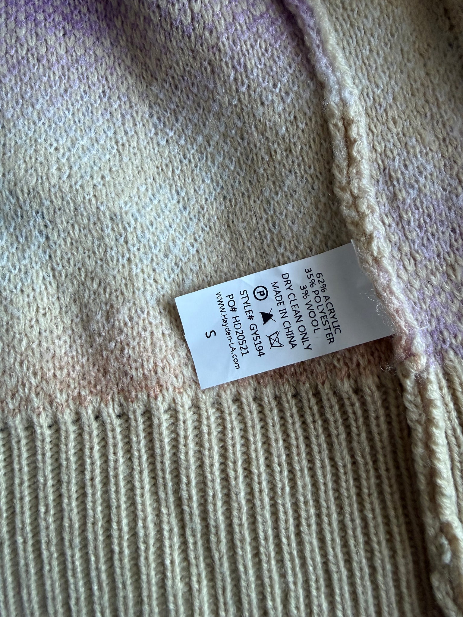 Hayden girls soft beige long open sweater cardigan with blue multi leopard pattern and large pockets, size S(7-8).