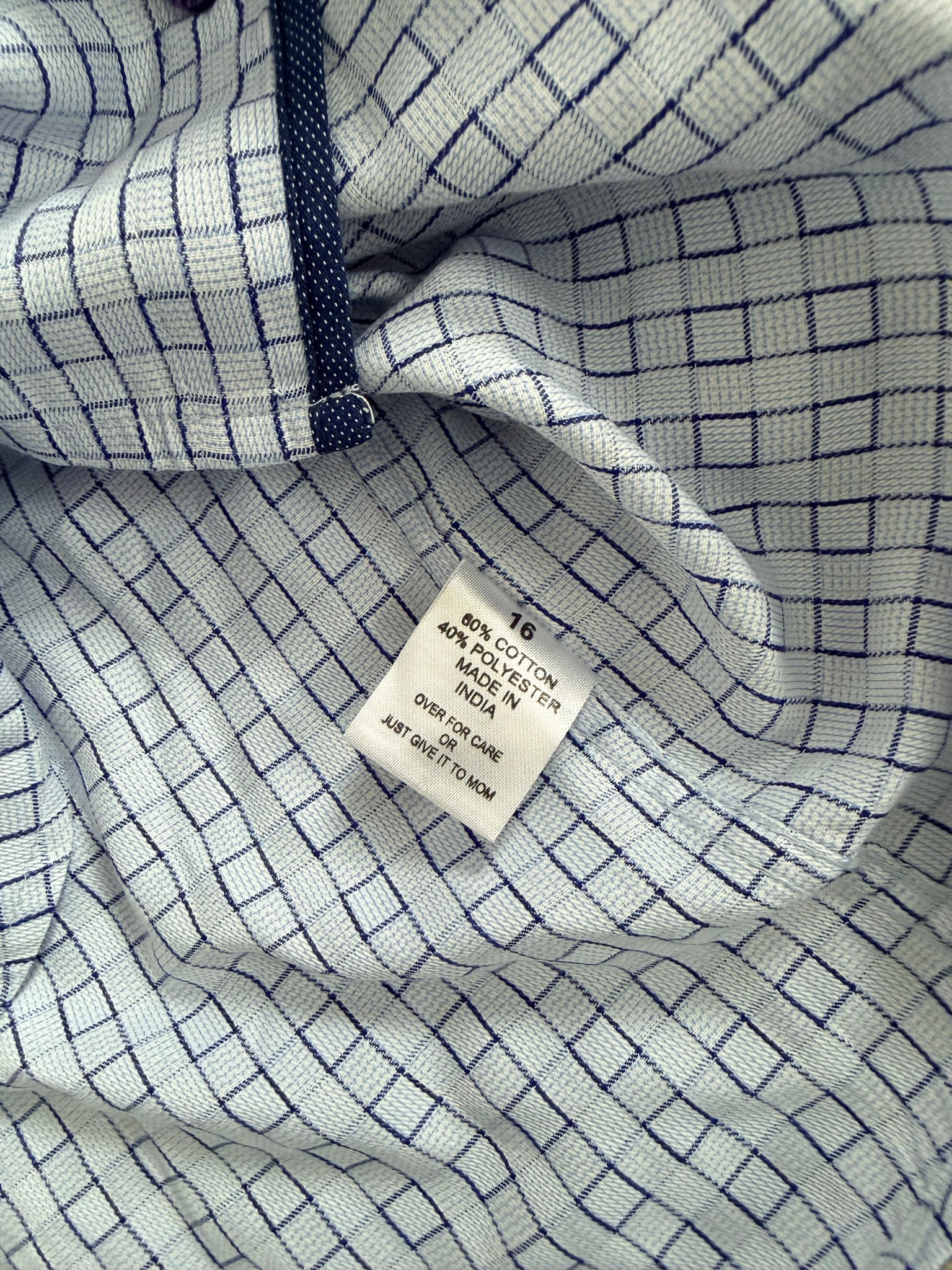 L&Z Royal boys pale blue/navy box weave button down dress shirt, size 16.