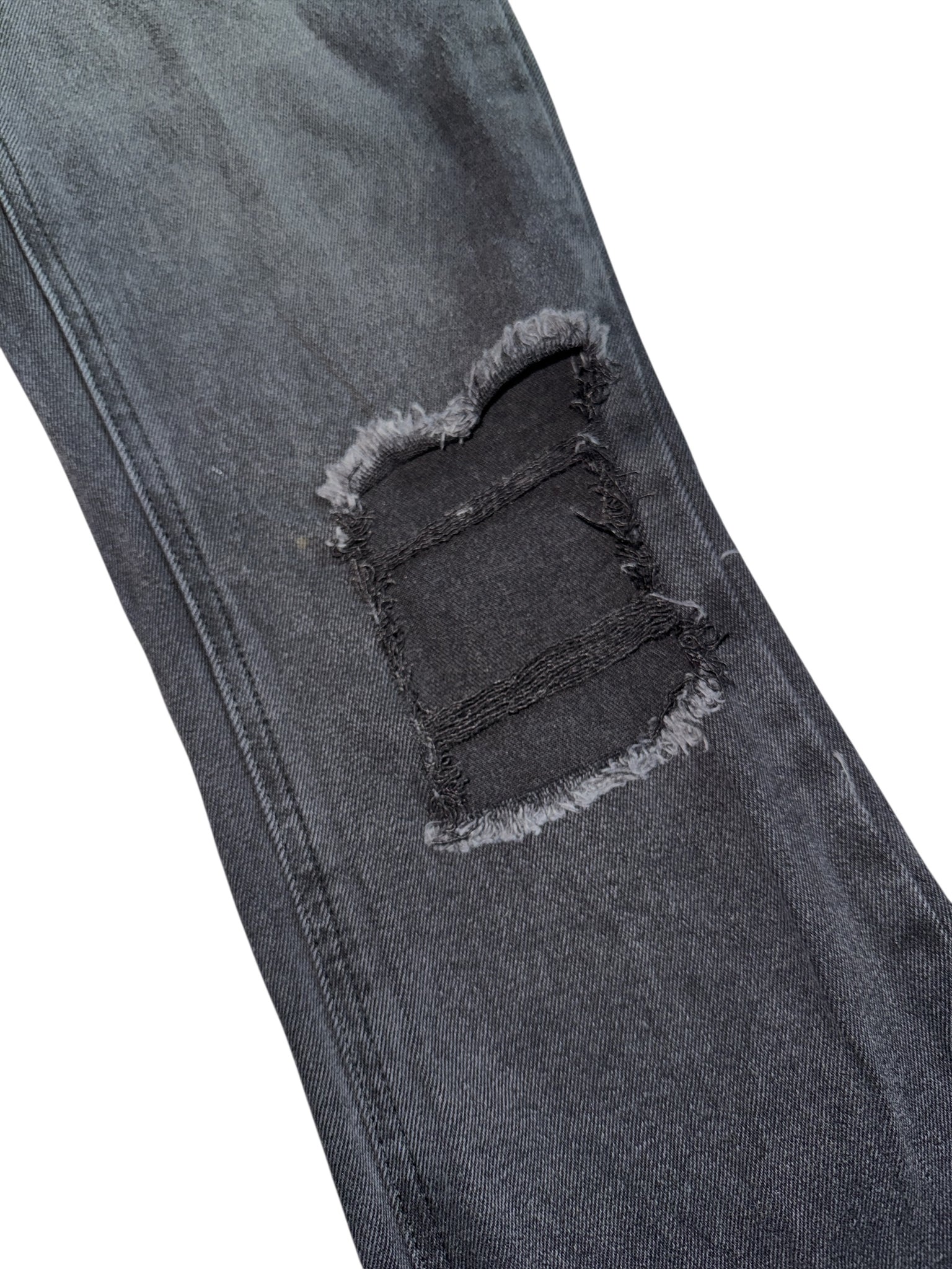 Avec Les Filles women’s high rise washed black (dark gray) kick cropped bootcut jeans with rips at knees, size 26.