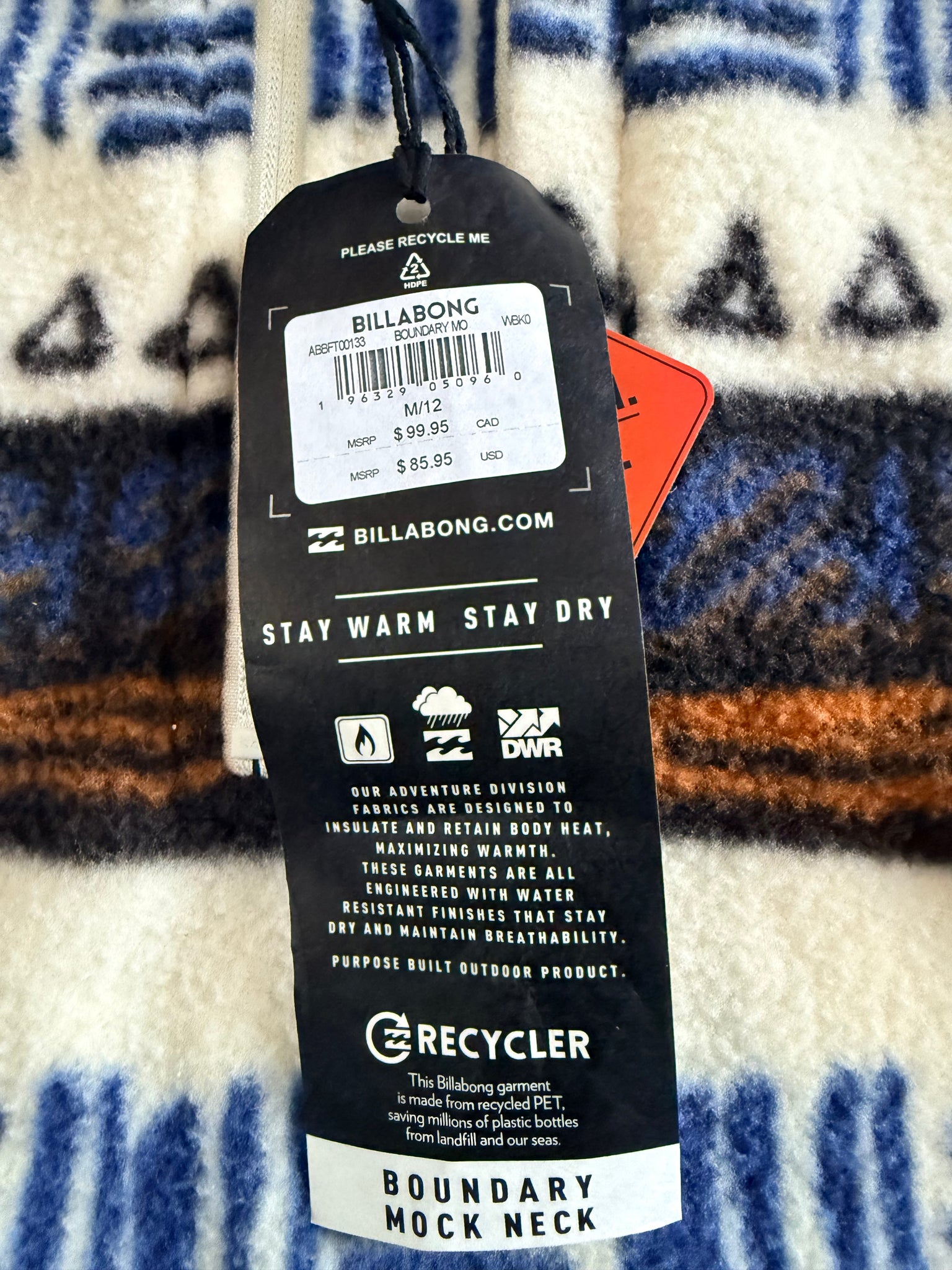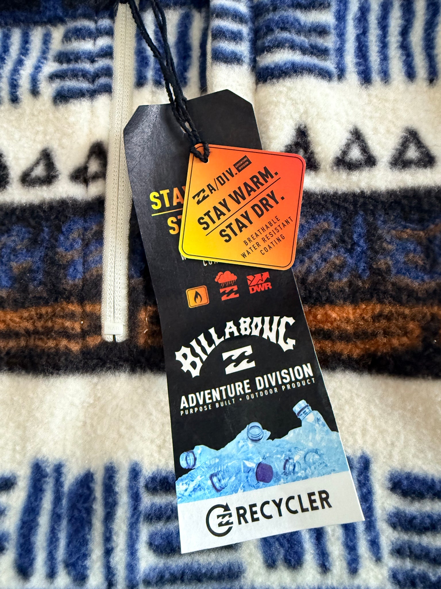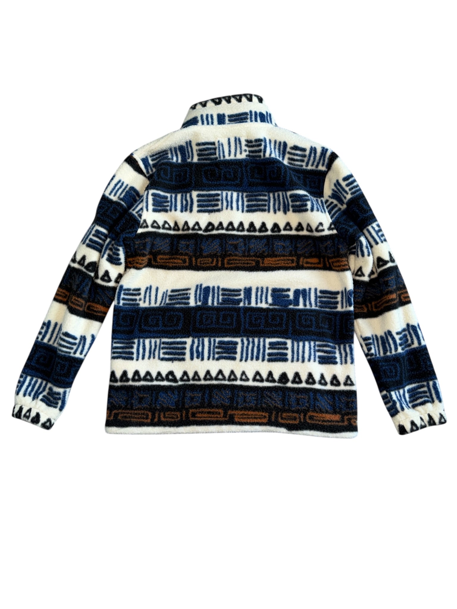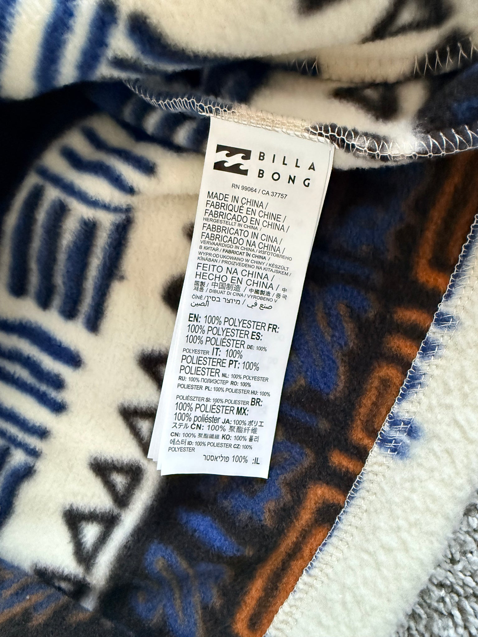 Billabong Recycler Adventure Division boys soft and fuzzy Boundary 1/2 zip pullover fleece sweatshirt jacket in blue/ivory/black geometric pattern, size M(12).