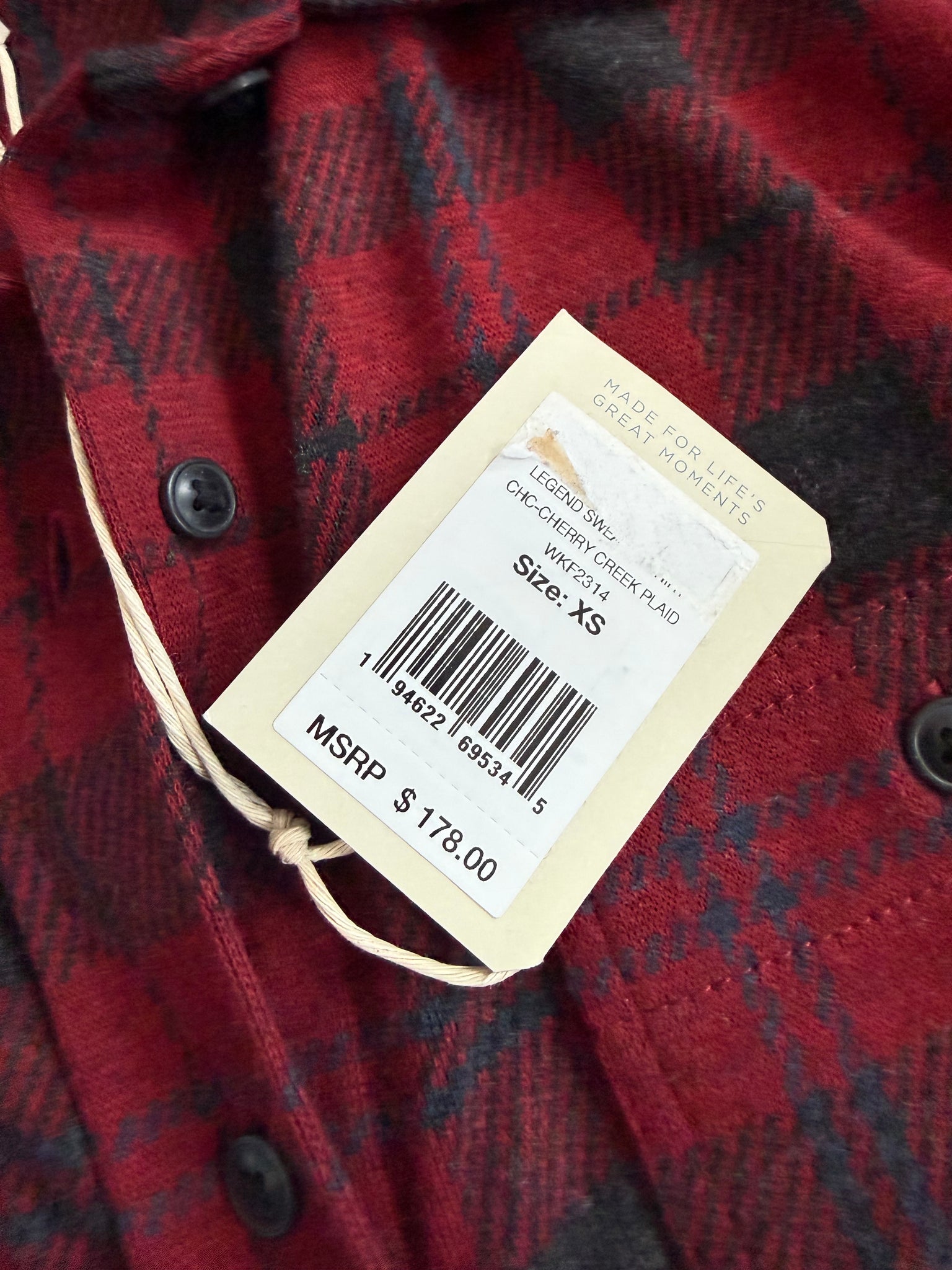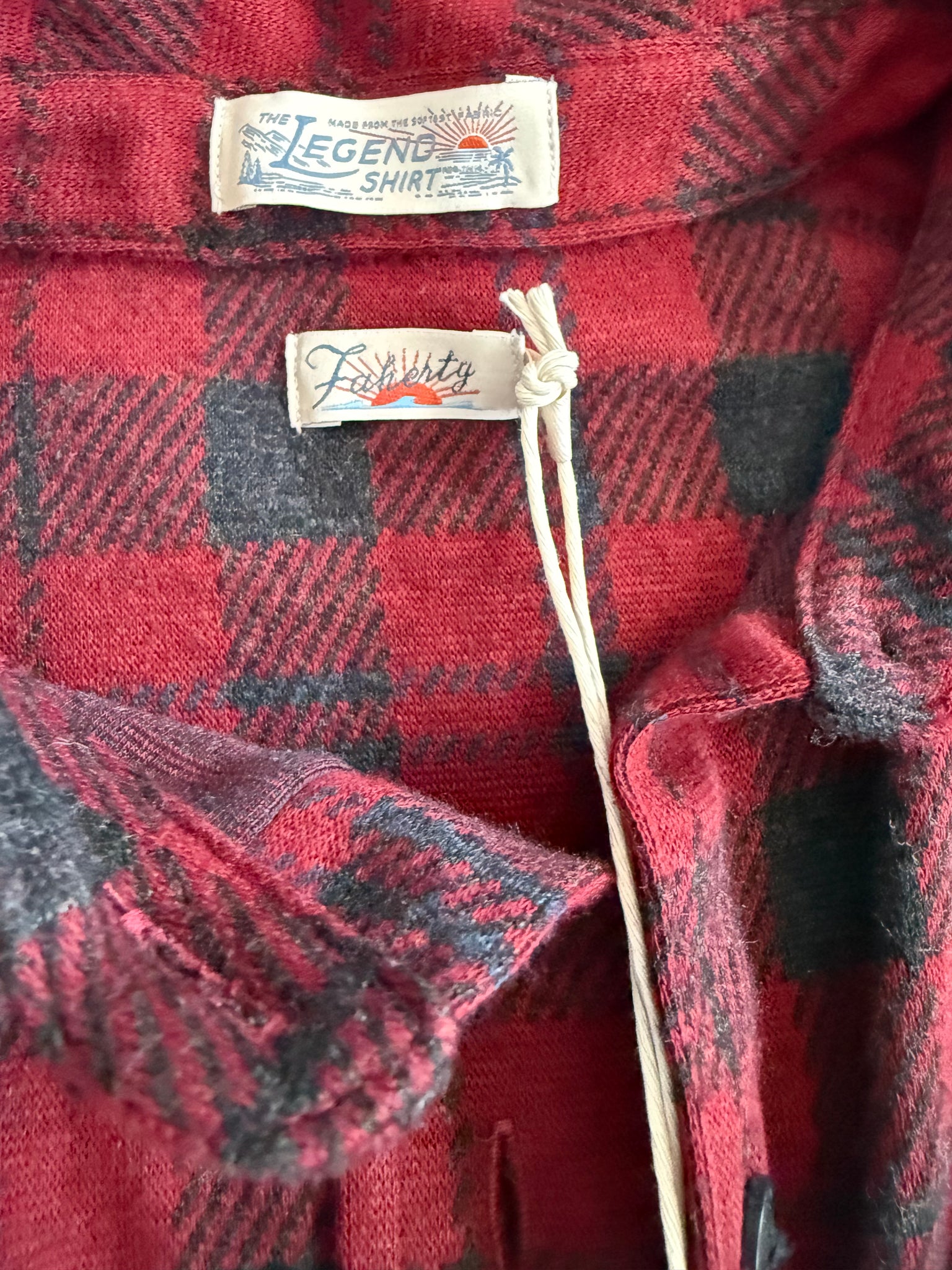 Faherty SUPER soft Legend sweater button down shirt in Cherry Creek plaid (red/gray combo) with pockets, size XS.