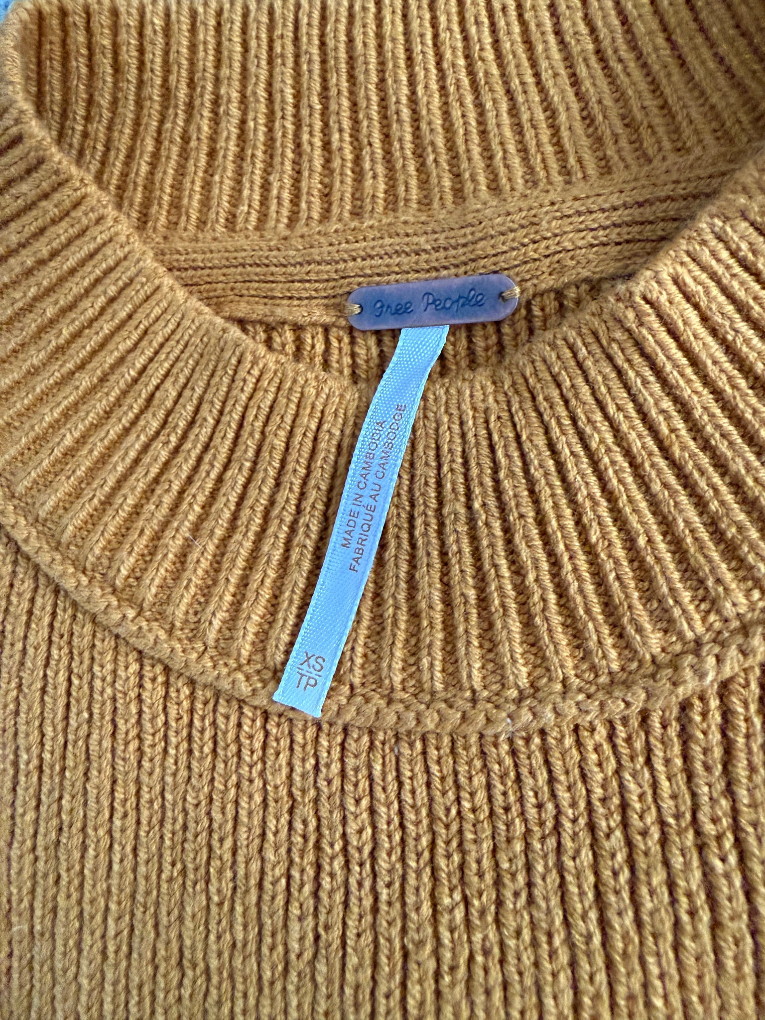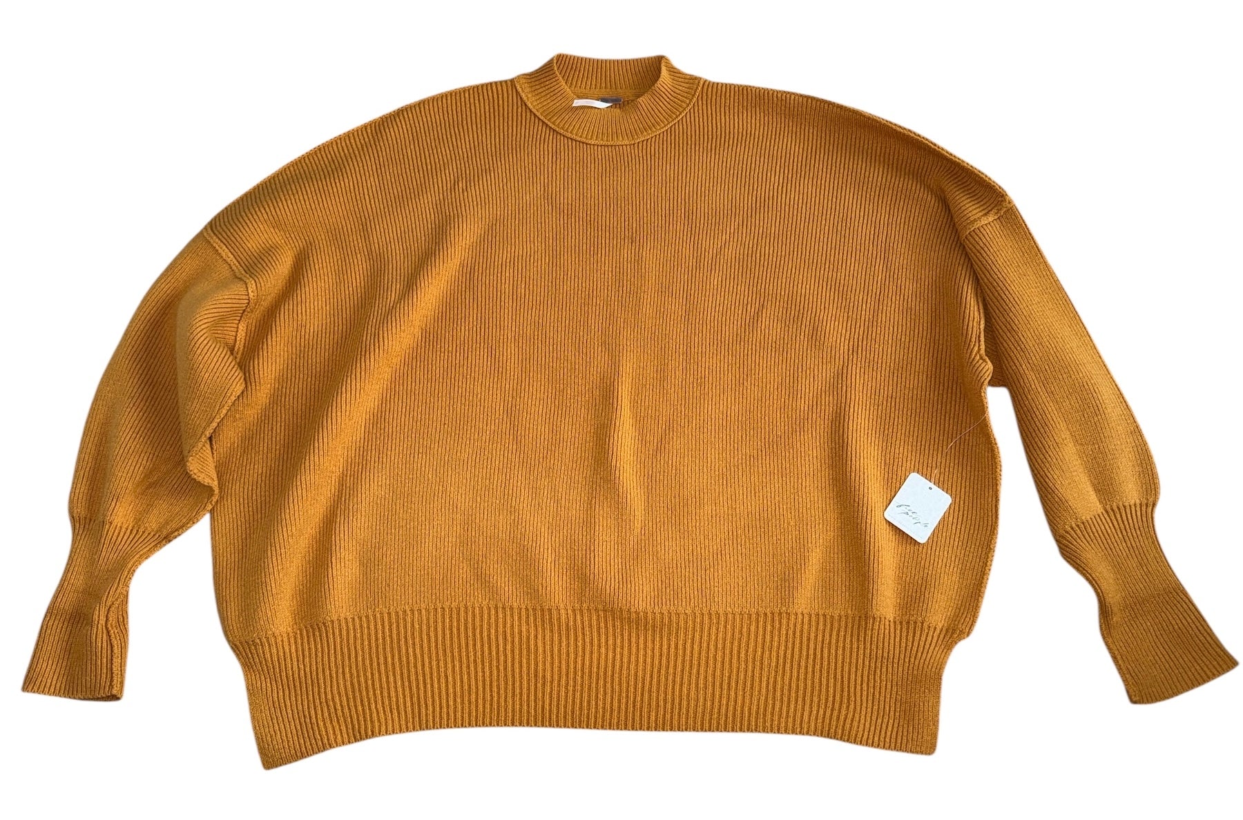 Free People women’s Inca gold heavyweight Easy Street mock neck pullover tUnix sweater with balloon sleeves, size XS.