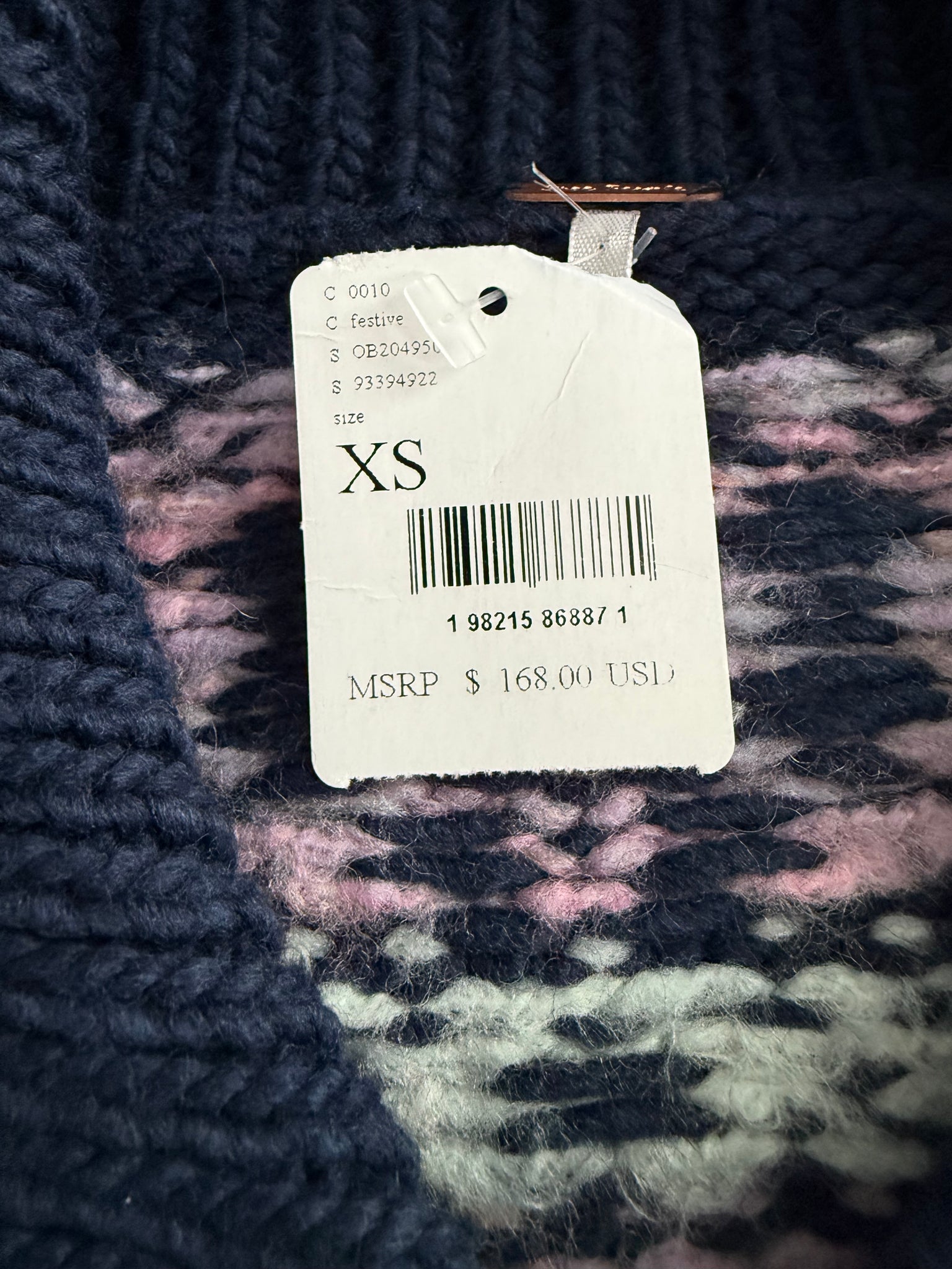 Free People women’s Snowdrift sweater cardigan with silver buttons in festive multicolor combo, size XS.