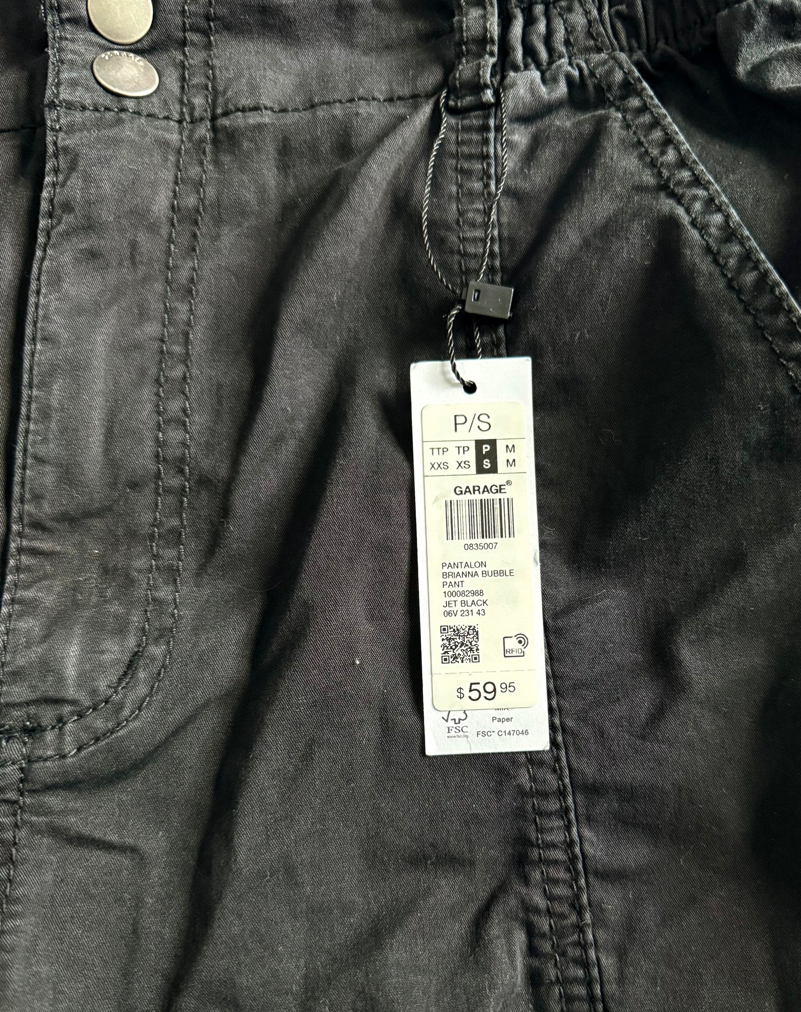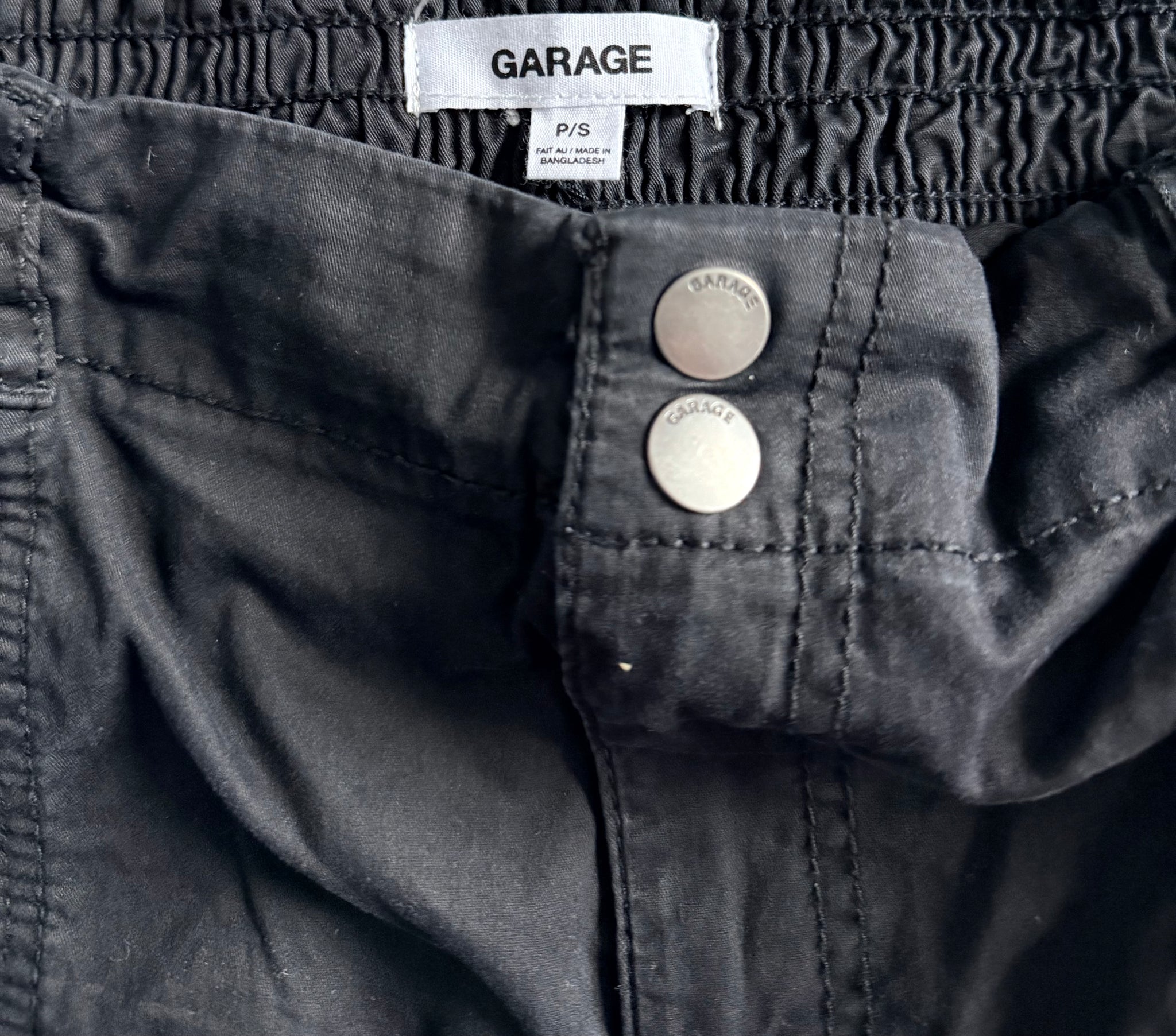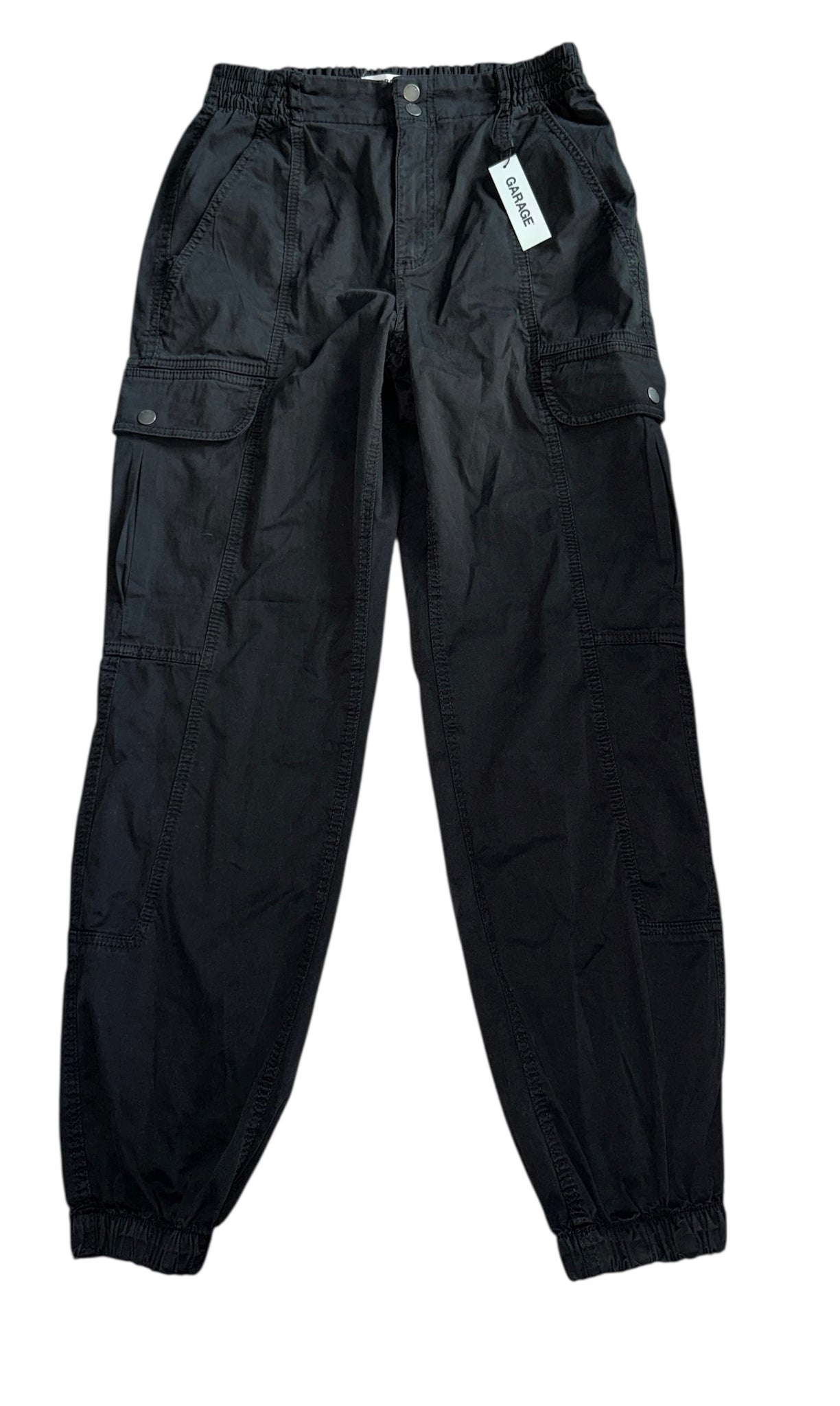 Garage women’s jet black Brianna bubble cargo pants with cuffed ankles and double snap/zip closure, size S.