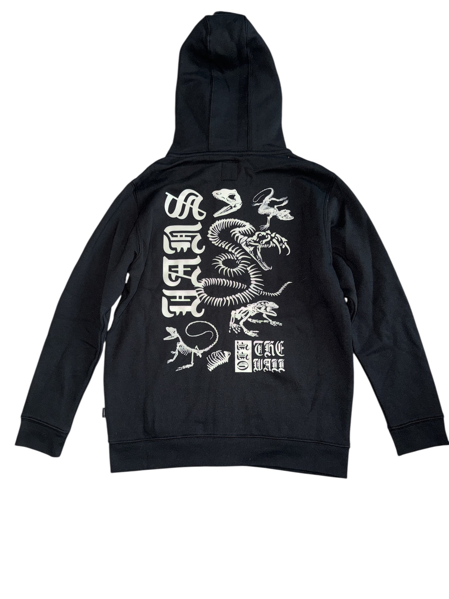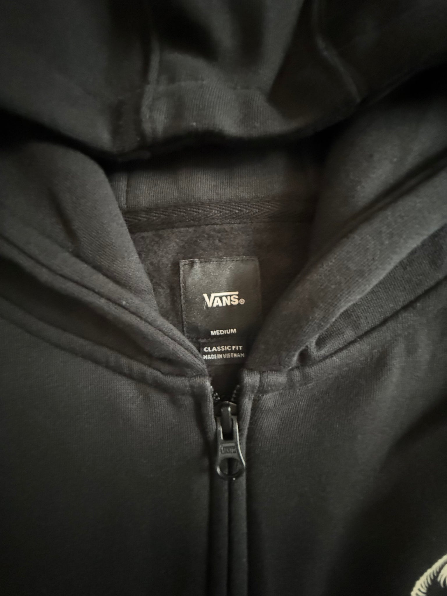 Vans kids super soft black full-zip Bone Yard glow in the dark hoodie sweatshirt with pockets, size M(10-12).