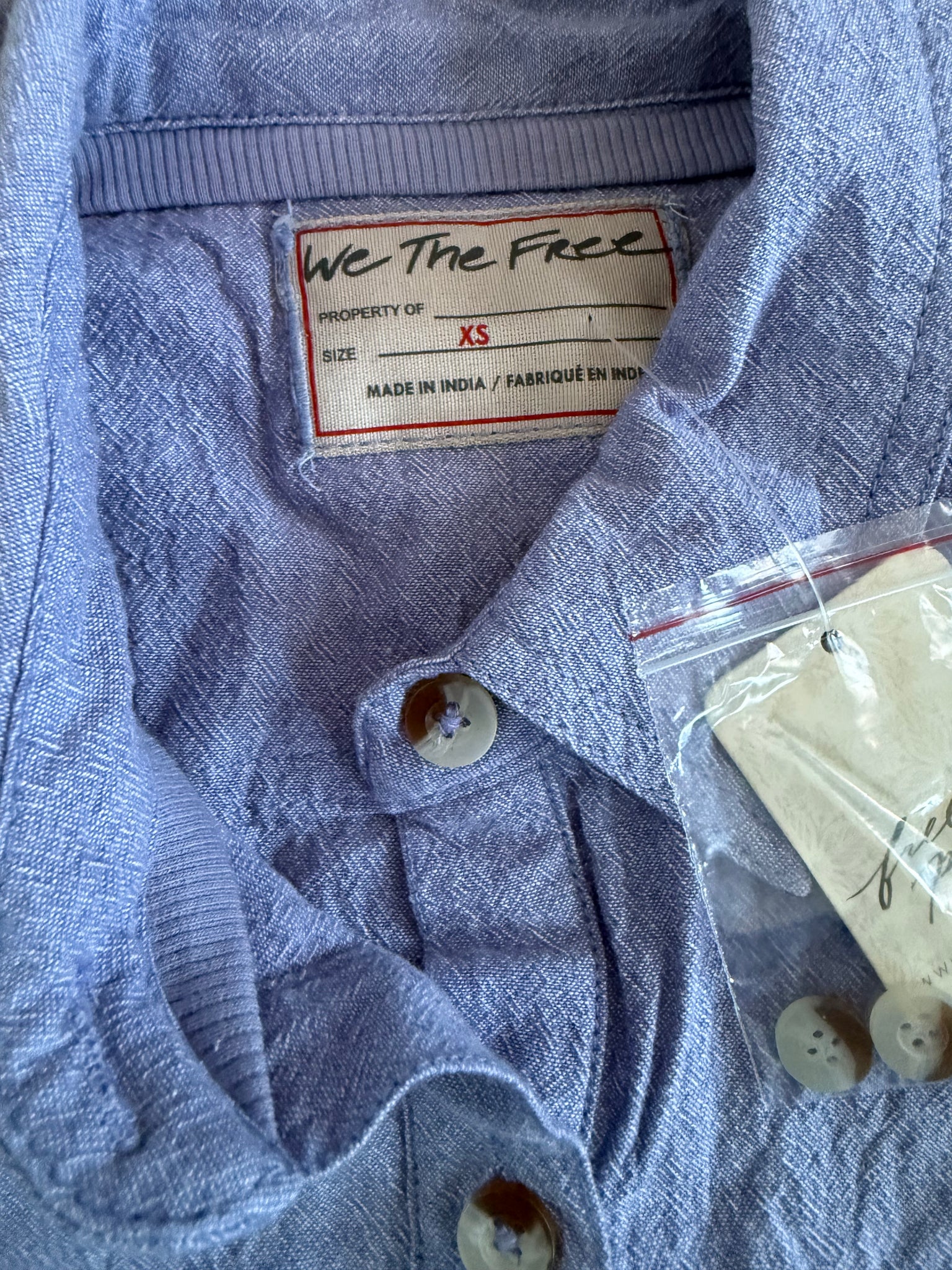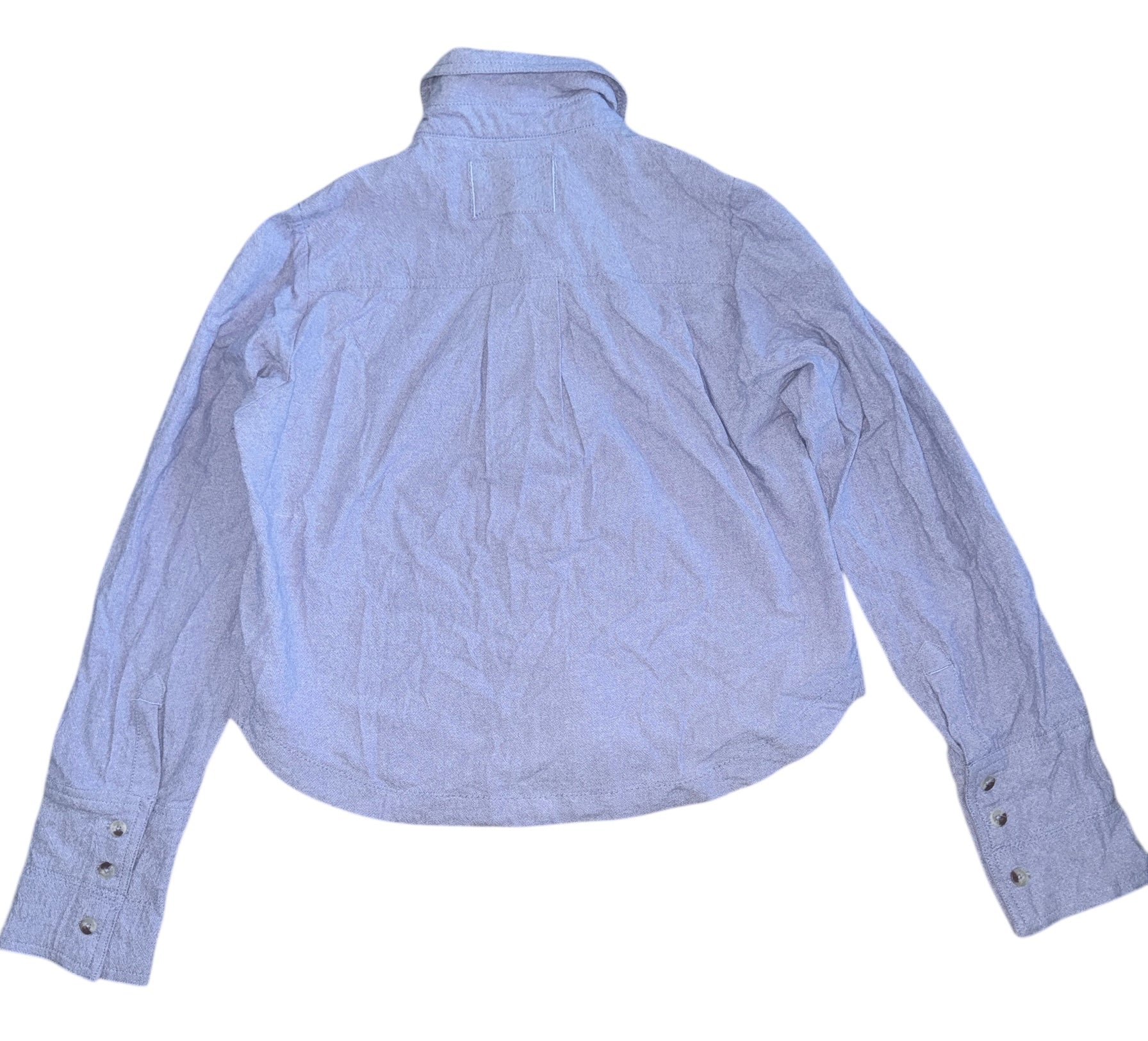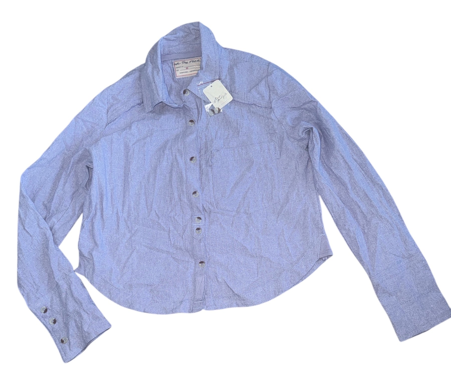 We The Free x Free People women’s classic Oxford woven cotton button down cropped long sleeve top, in purple combo (bluish purple), size XS.