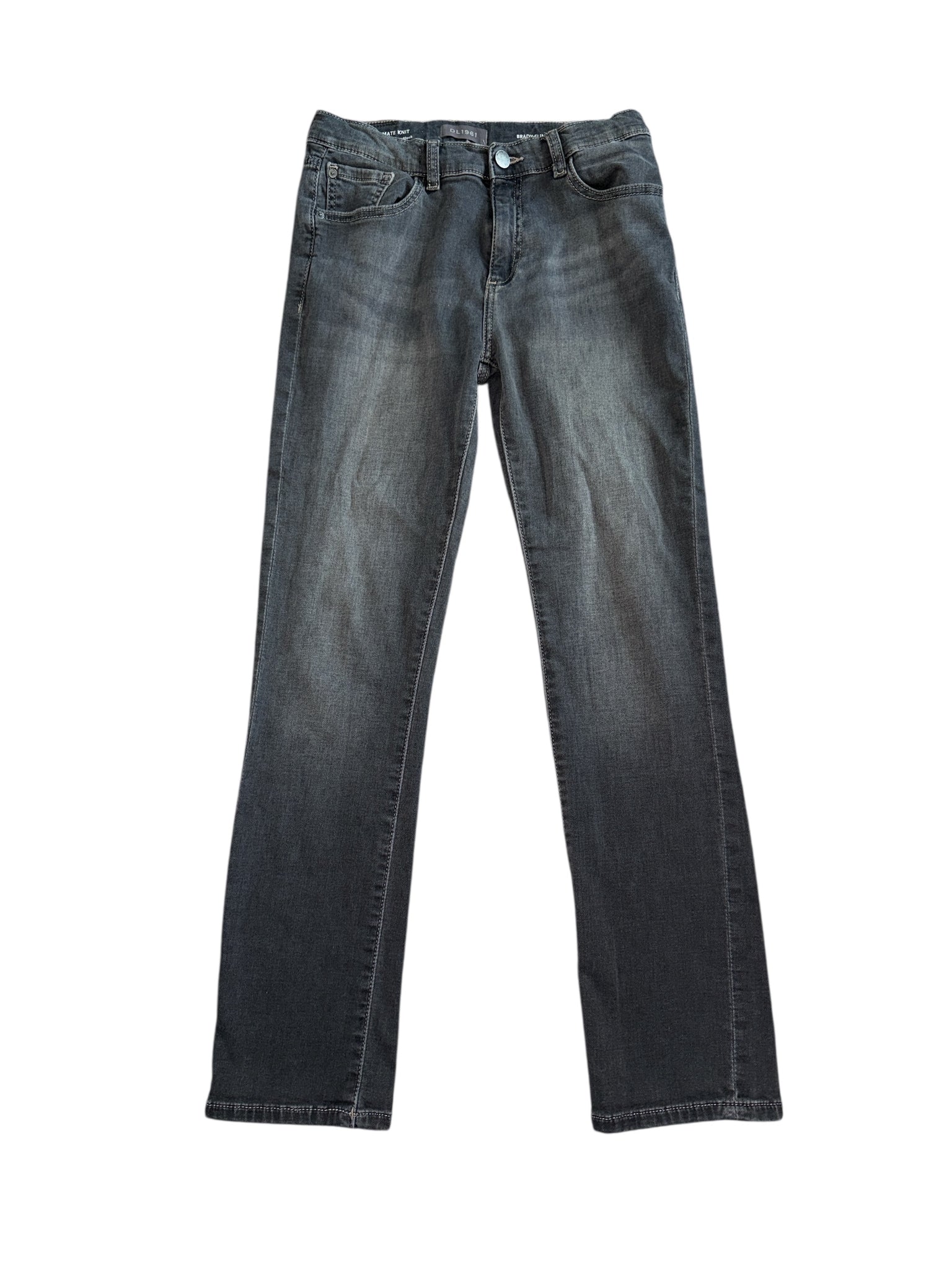 DL1961 boys Brady slim jeans with Ultimate Knit (treated with HeiQ V-block) in gunmetal gray strench denim wash, with adjustable bands inside waist for more snug fit, size 14.