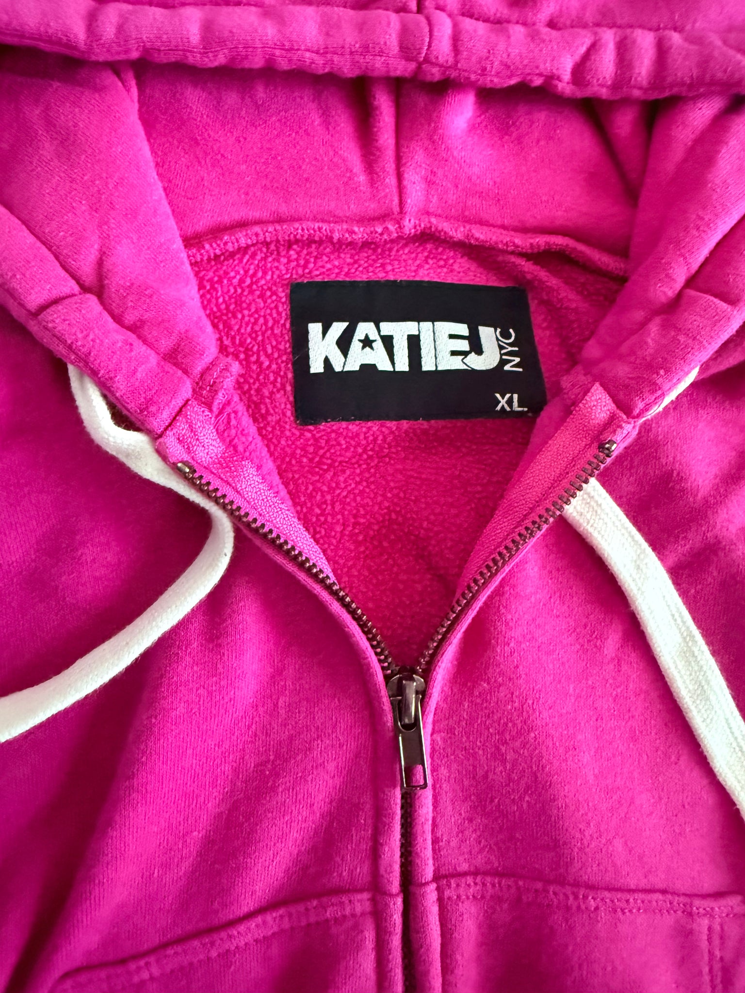 Katie J NYC tween girls 2pc Dylan fleece set - cropped zip hoodie, and matching shorts in dark pink, size XL(14).