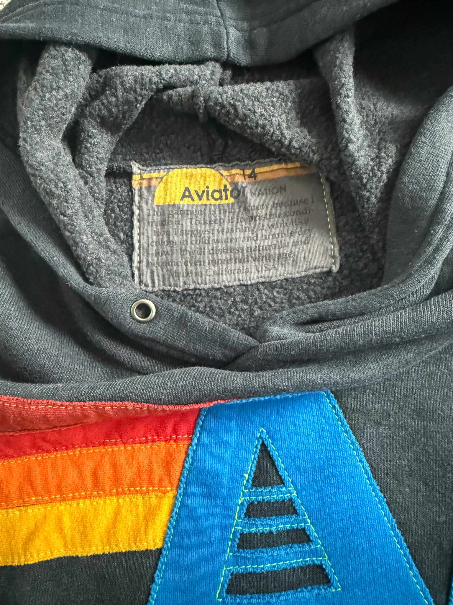 Aviator Nation unisex kids charcoal gray embroidered logo pullover fleece lined hooded sweatshirt with kangaroo pocket, size 14.