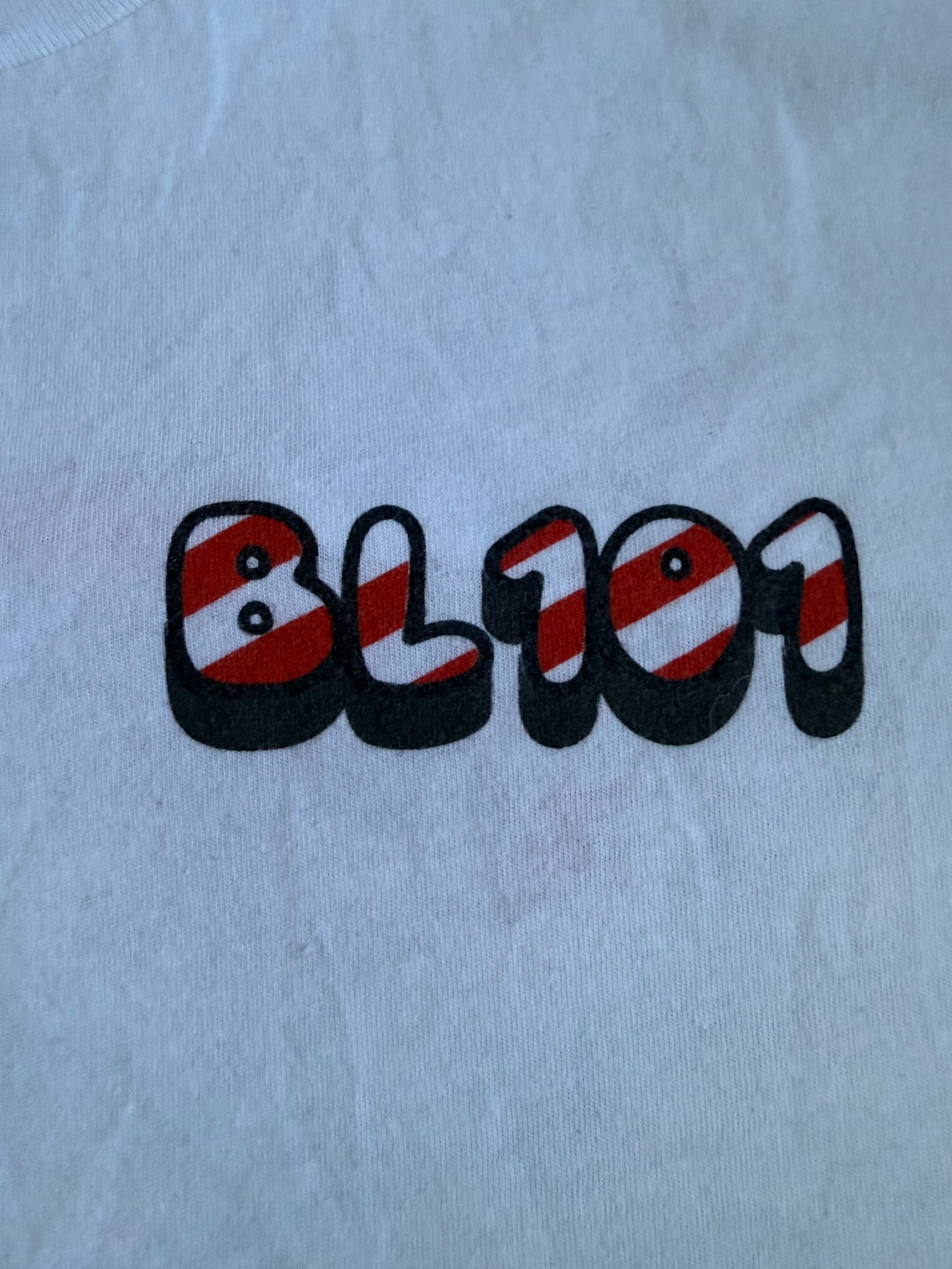 Baseball Lifestyle B101 boys soft white crew neck tee with Swingin’ Spice Nothin’ Nice Christmas gingerbread graphic, size youth XL.
