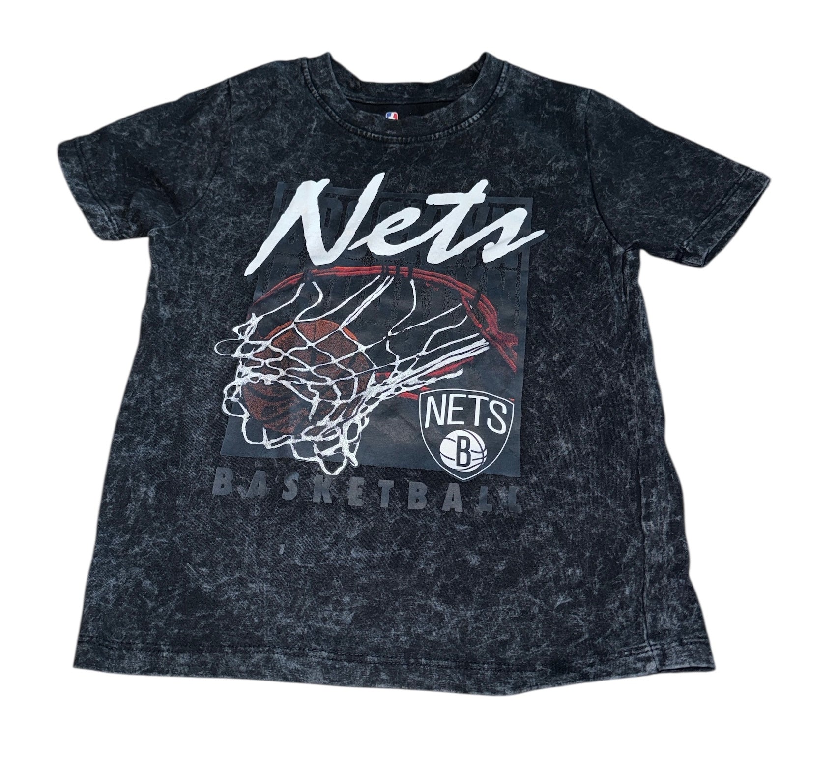 Fanatics boys officially licensed mineral wash crew neck tee with Brooklyn Nets basketball graphic, size L(7).