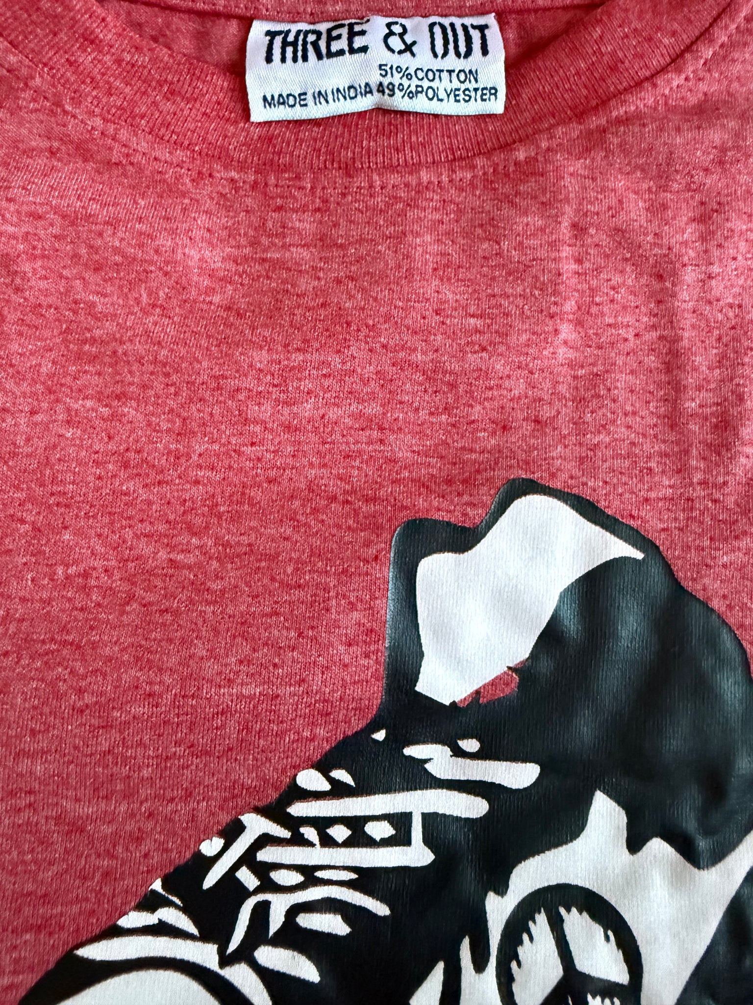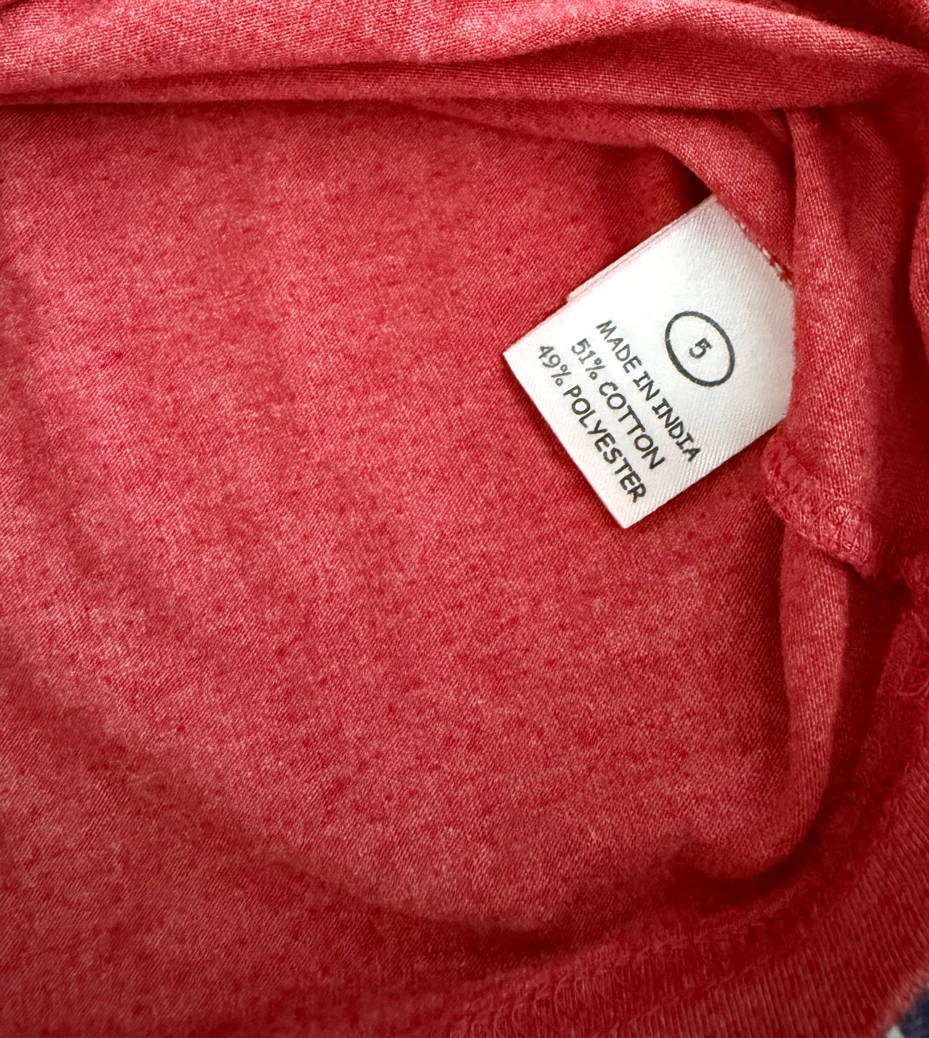 Three & Out boys super soft light red heather crew neck tee shirt with black and white melting high top sneaker with peace sign graphic, size 5.
