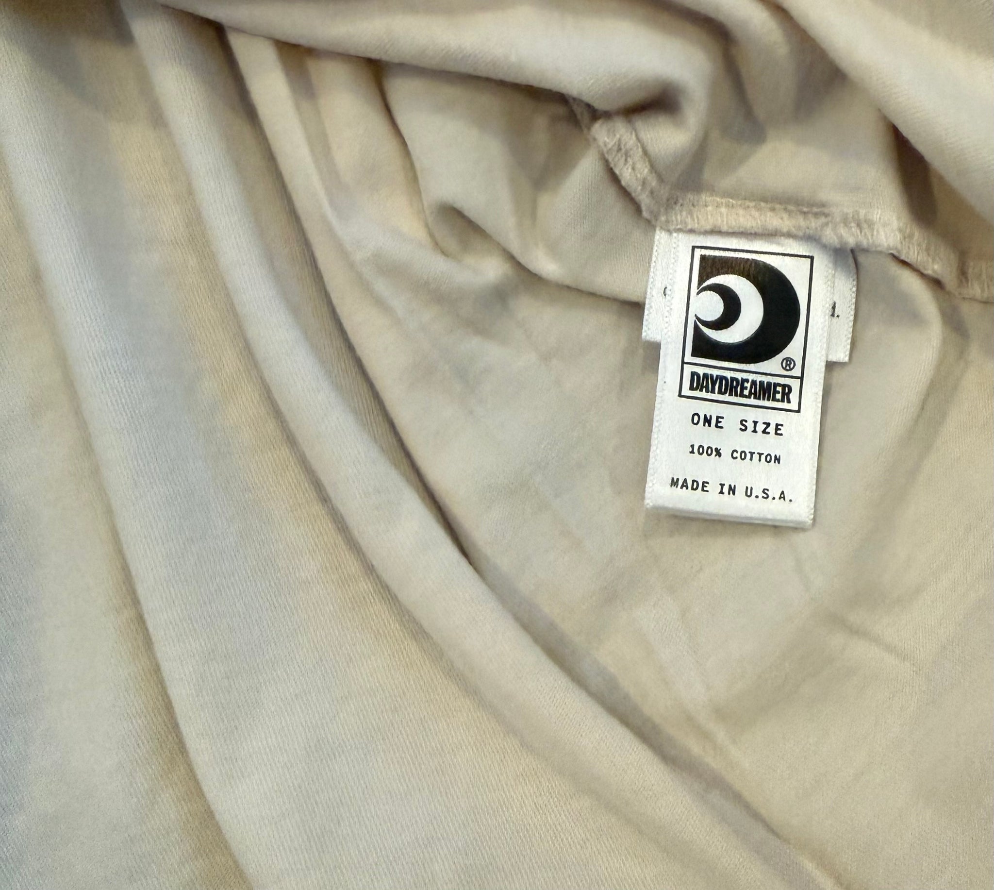 Daydreamer women’s soft beige oversized tee shirt with colorful Led Zeppelin Established 1968 record graphic, ONE SIZE FITS MOST.