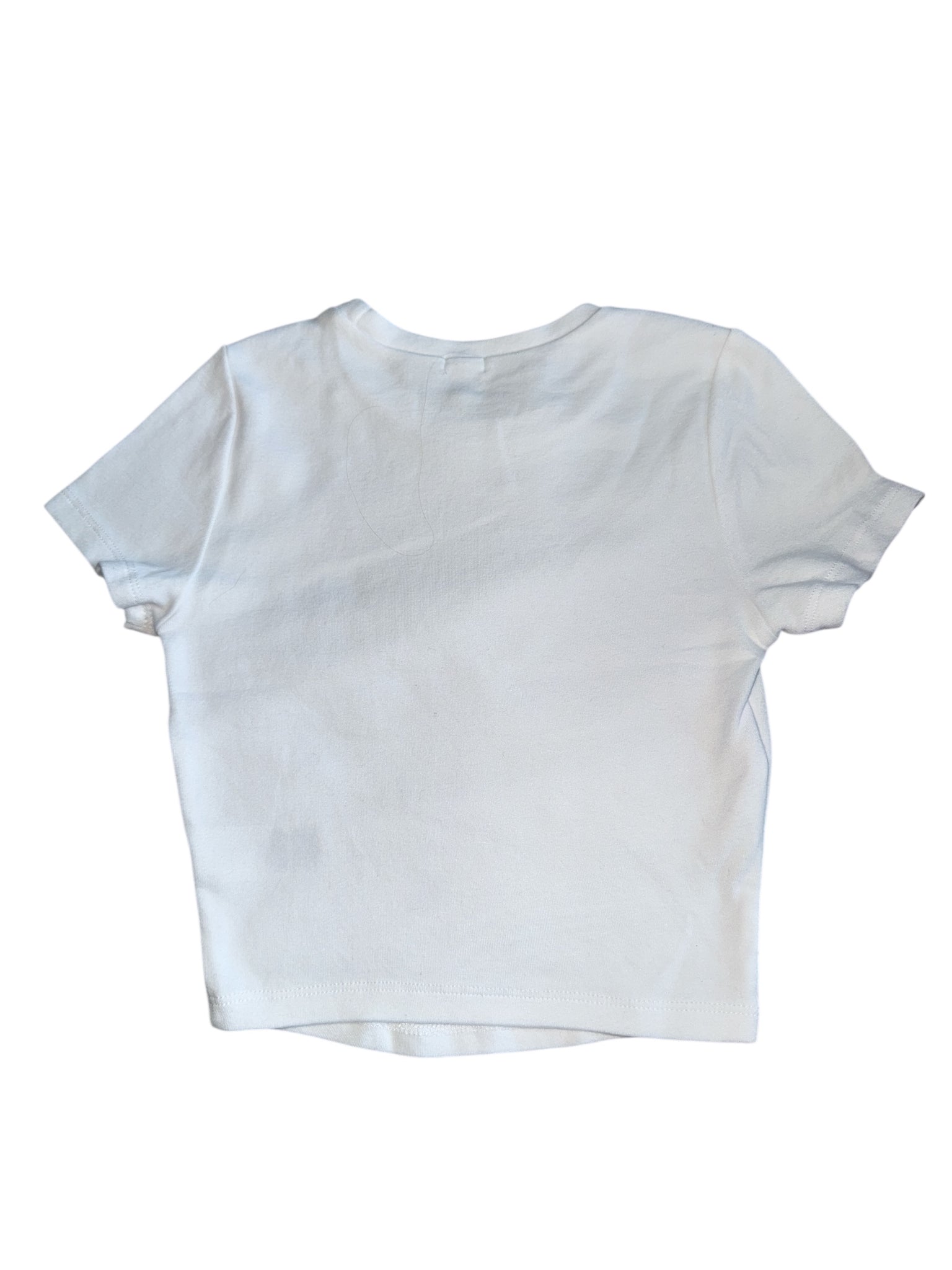 Garage clothing women’s stretchy white cropped tee with Angels graphic in black, size XS.