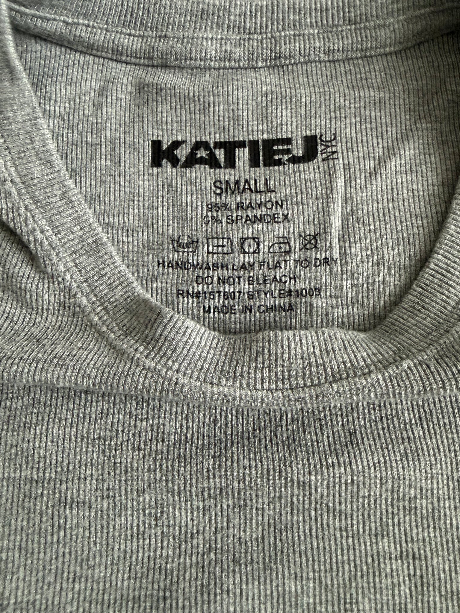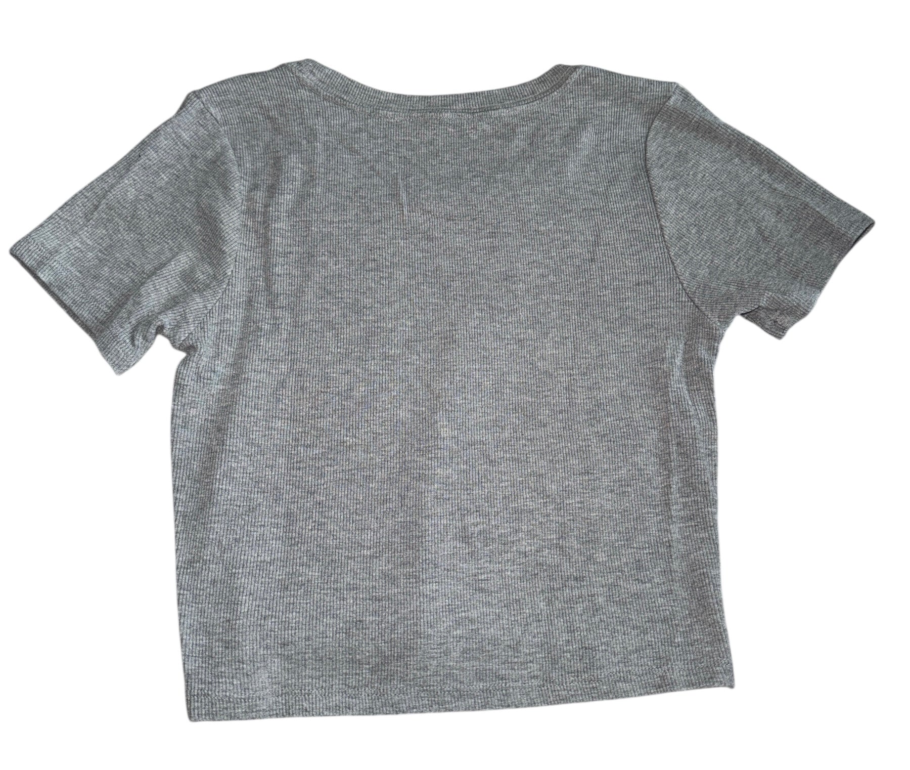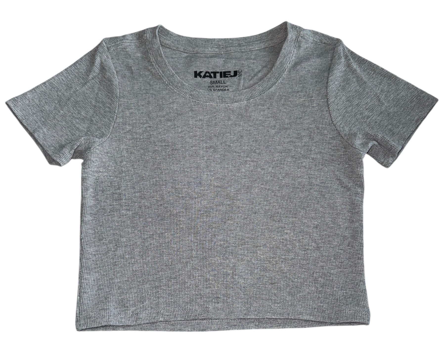 Katie J NYC juniors/womens soft and stretchy ribbed light heather gray cropped tee size S.