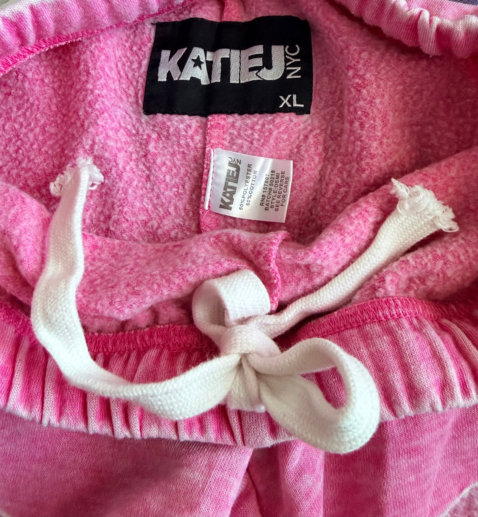 Katie J NYC Demi tween girls super soft pink burnout fleece lined lounge shorts with white draw cords hidden inside waistband, size XL(14).