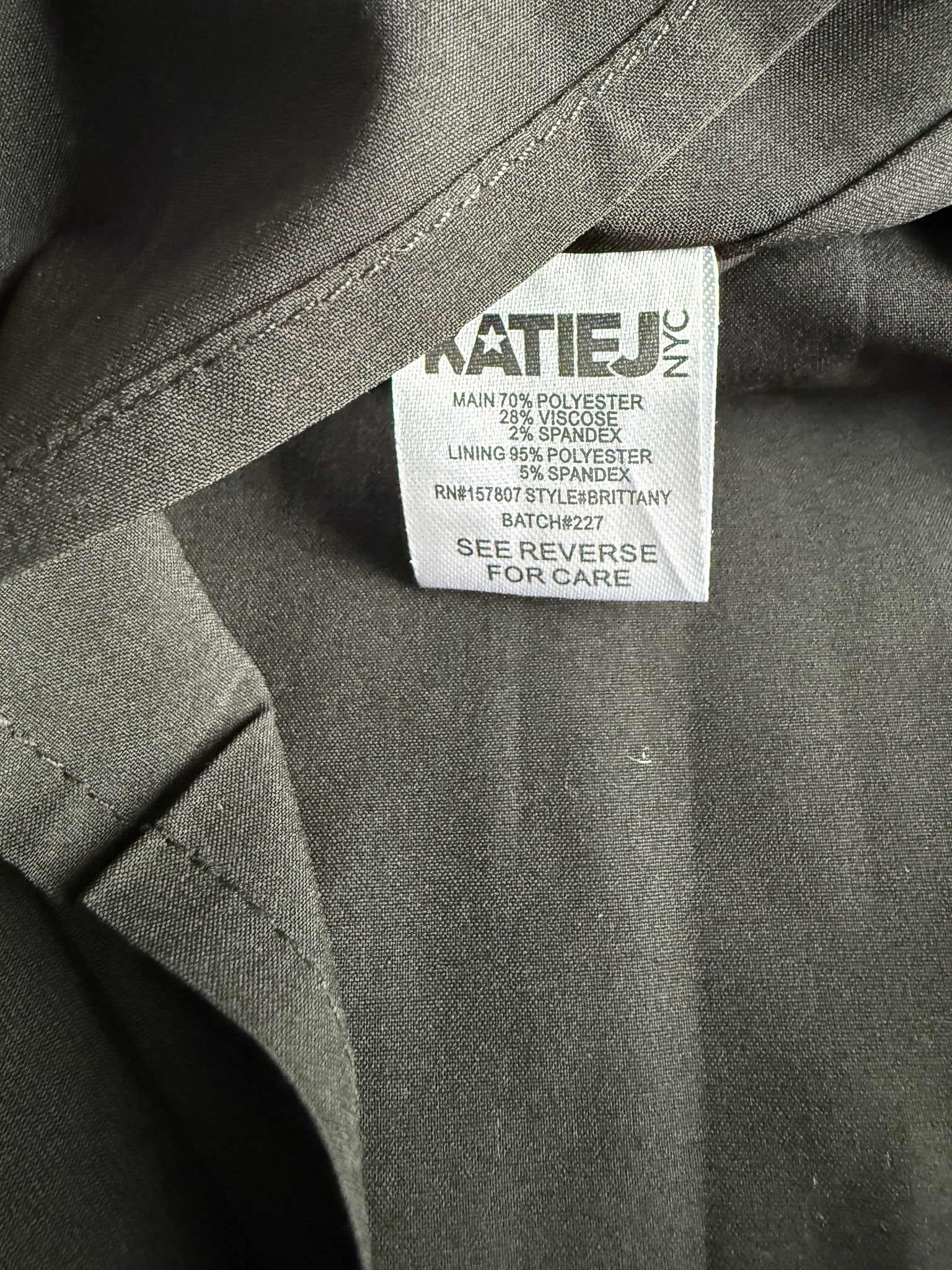 - lining: 95% polyester, 5% spandex