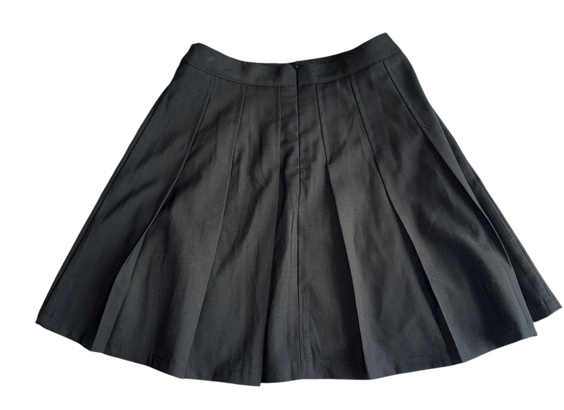 Katie J NYC Juniors black pleated mini skirt, fully lined with zip closure in back of waistband and buckles off to side size XS.