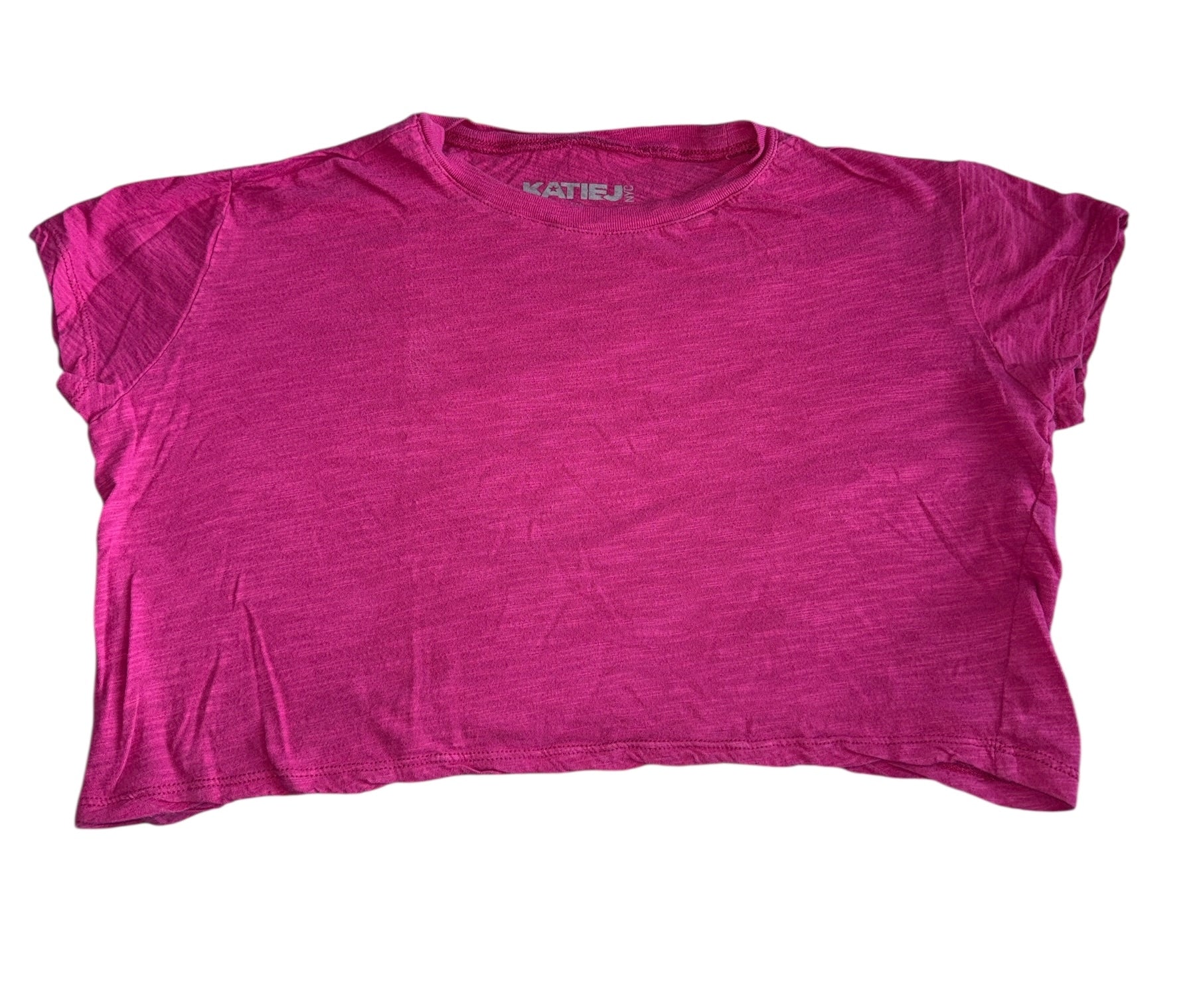 Katie J NYC tween girls cropped slub cotton round neck tee in berry, size XL(14).