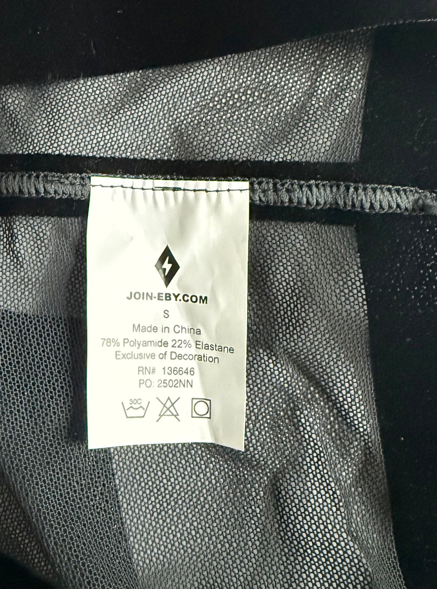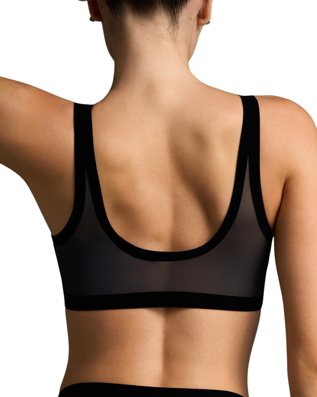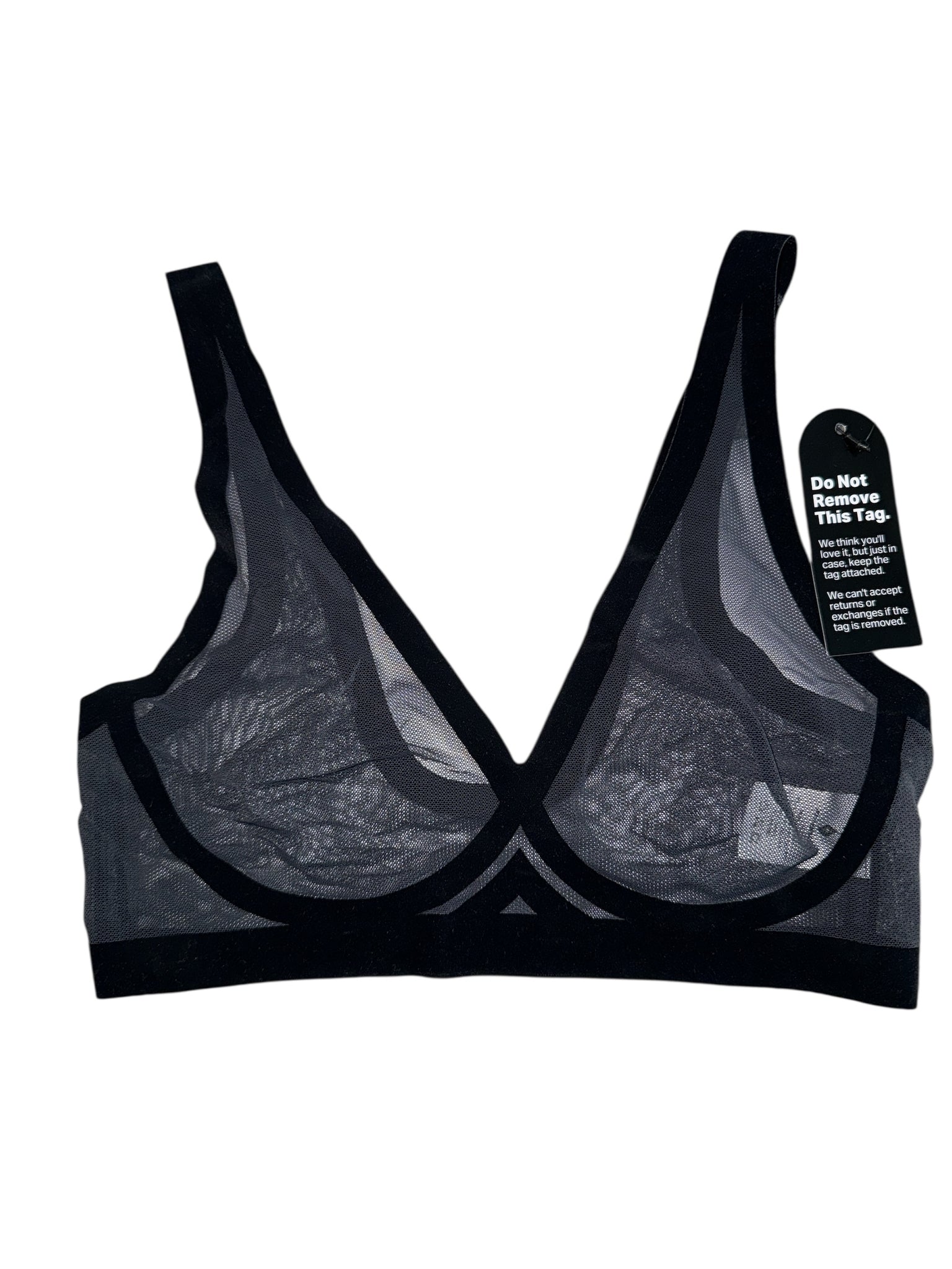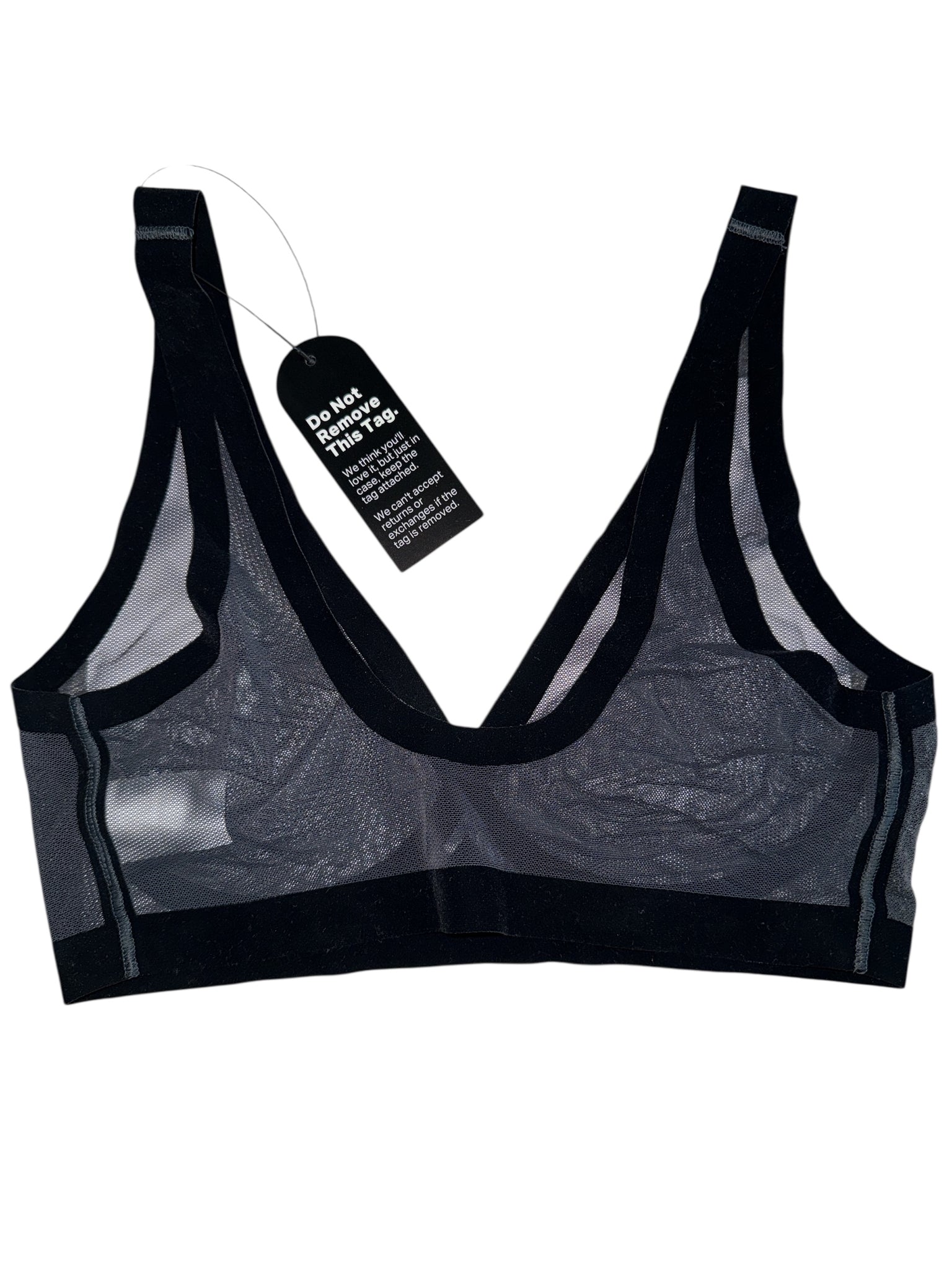 EBY women’s sheer black mesh v-neck bralette, seamlessly designed to fit all shapes and sizes, no underwire, and smooth finish, size S.