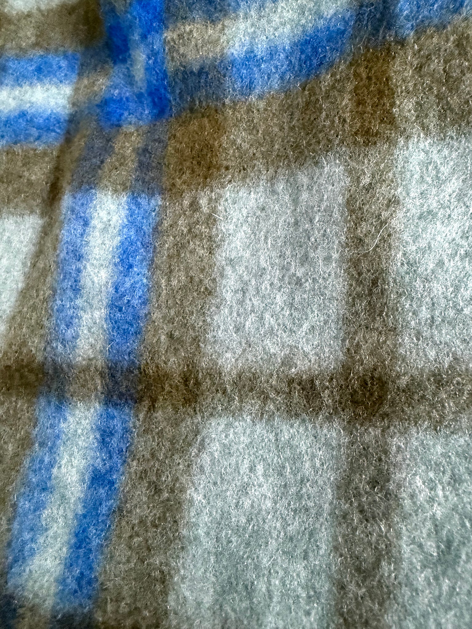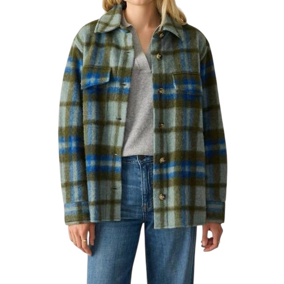 Faherty fuzzy Cotswold button down shirt in Oakland plaid (green/blue combo) with pockets, size XS.
