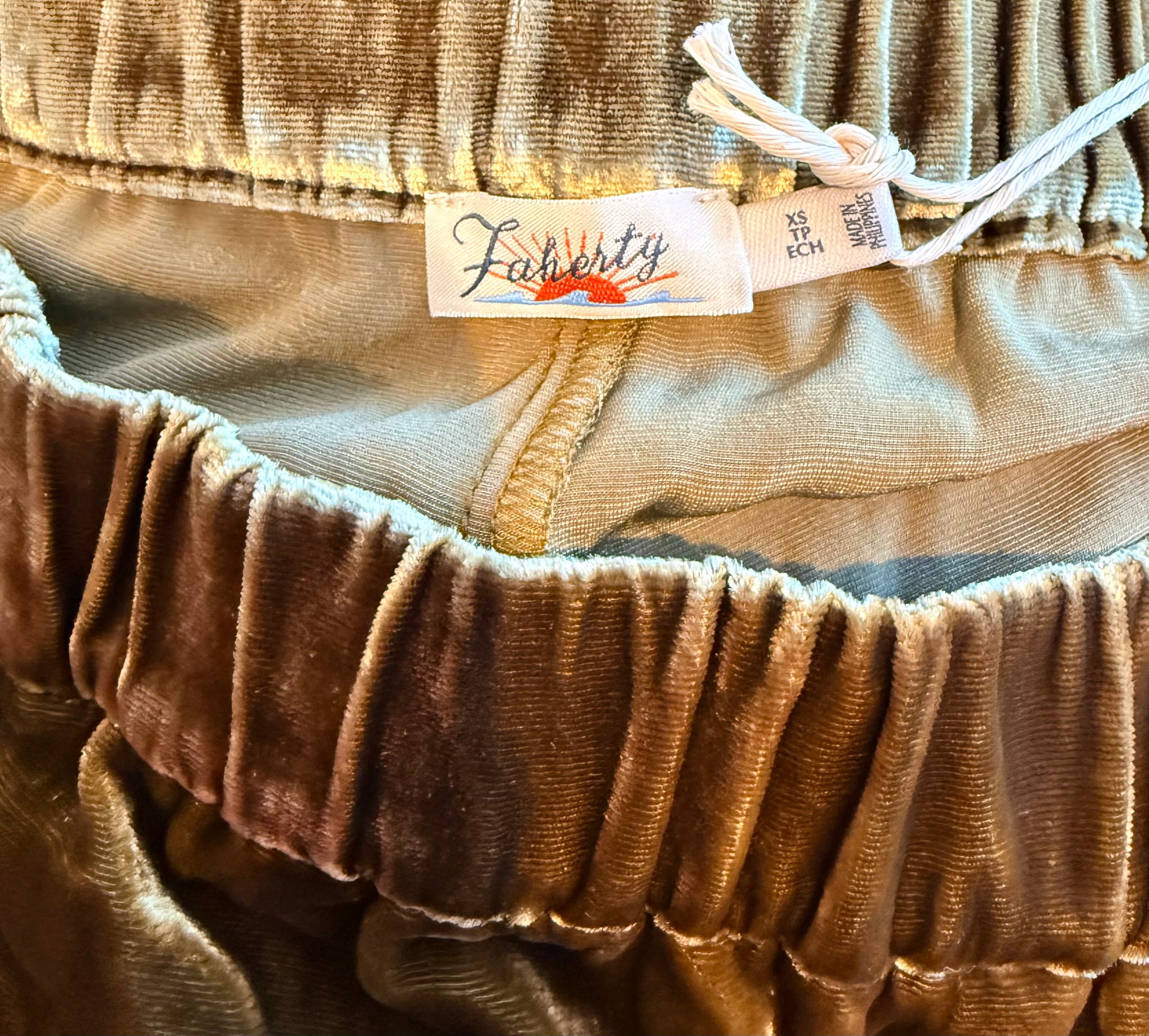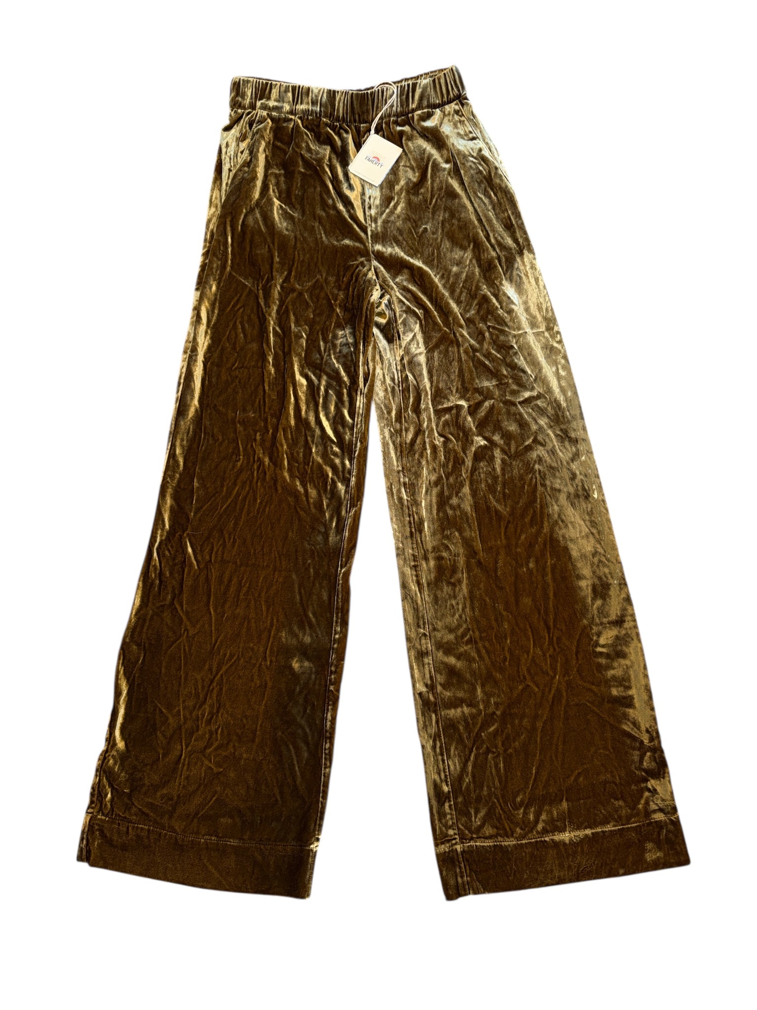 Faherty women’s super soft, rich gold Genevieve silk velvet pull on wide leg pants, size XS.