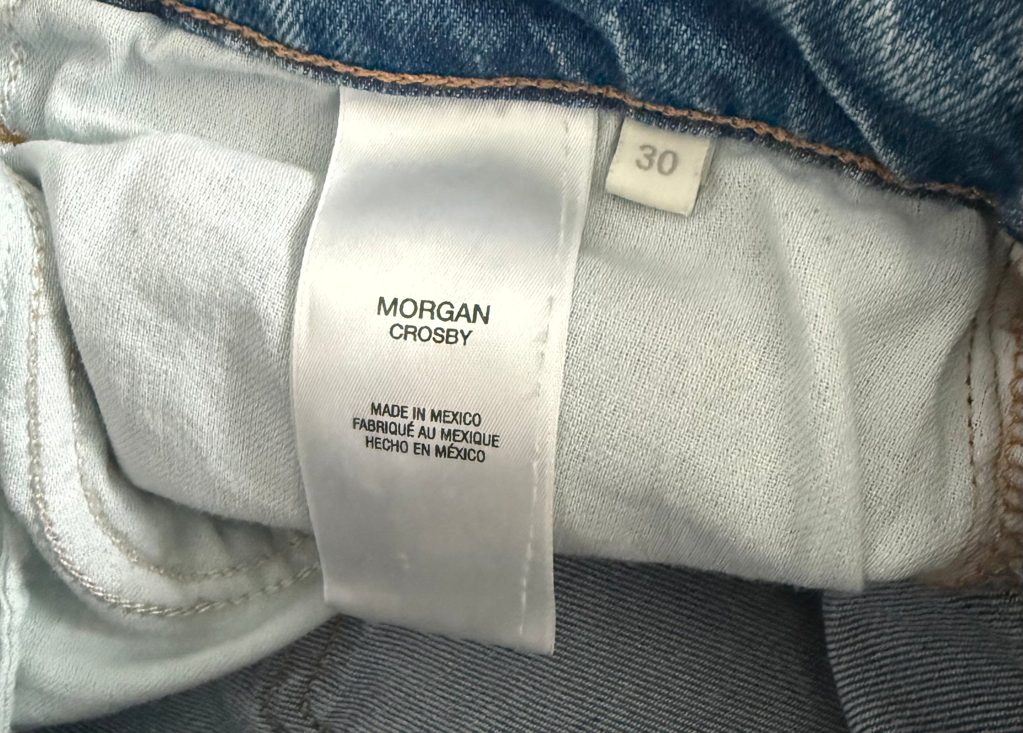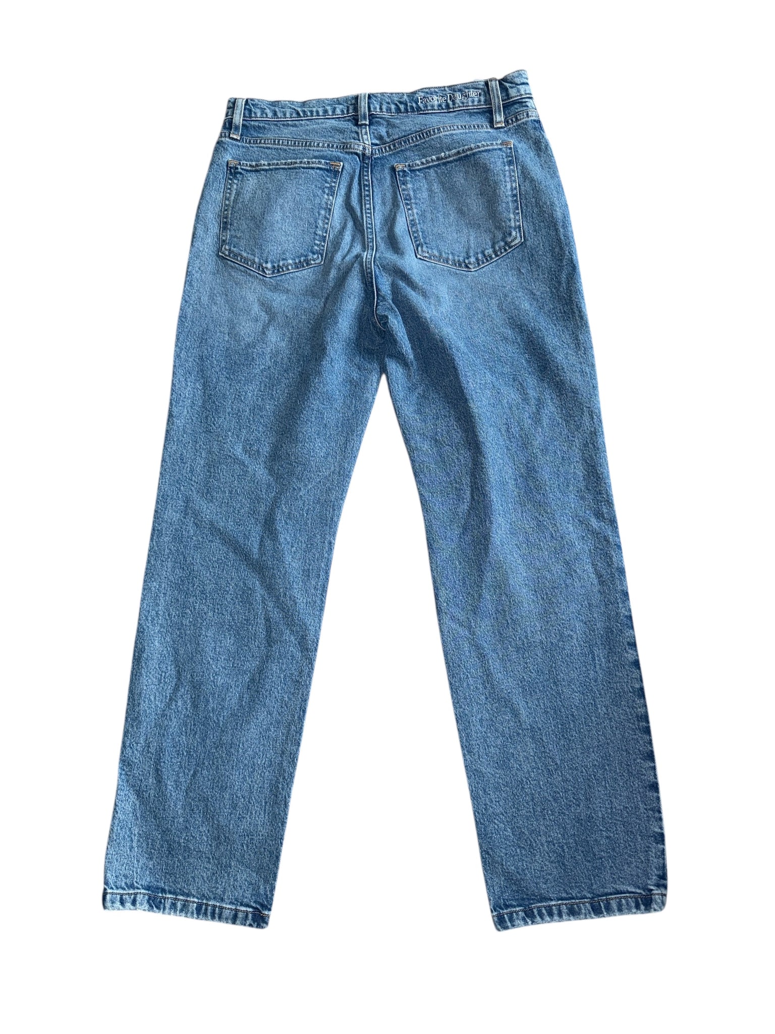 Favorite Daughter women’s Morgan Shortie high rise petite straight leg jeans in Crosby wash (light, clean, distressed), size 30.