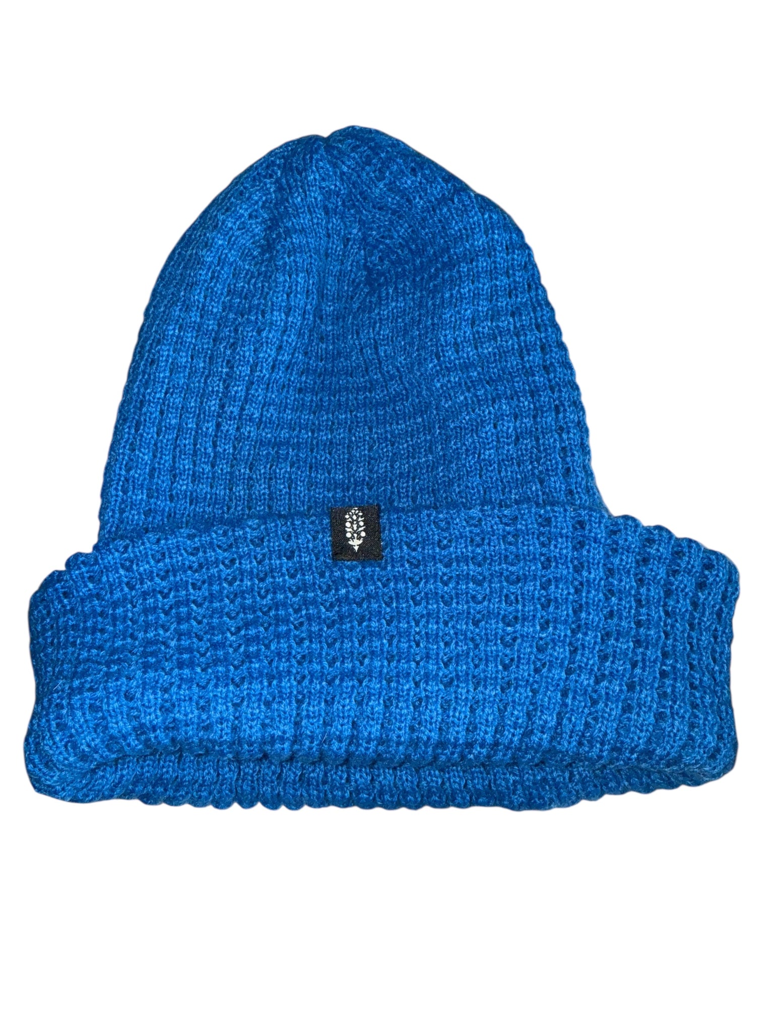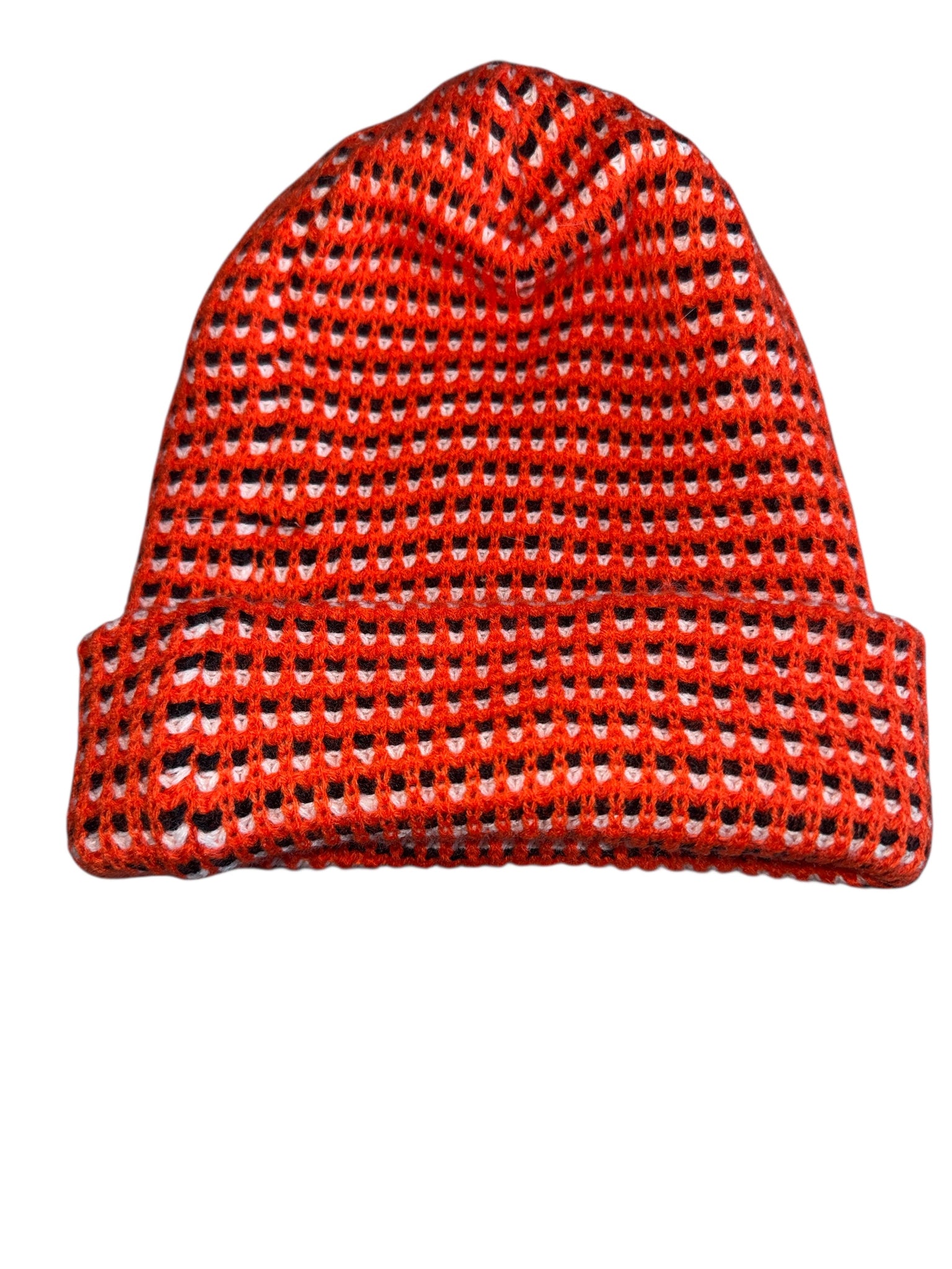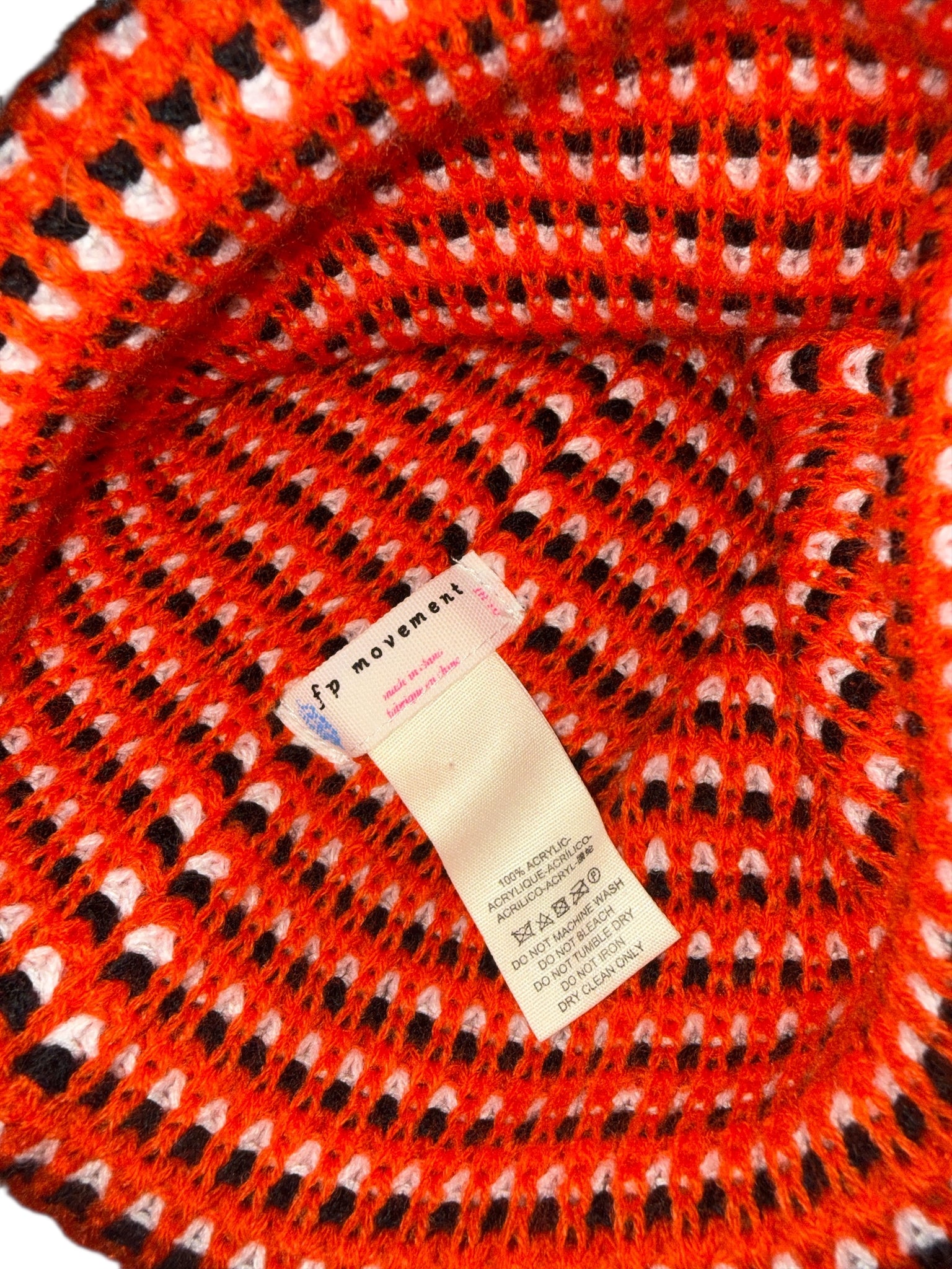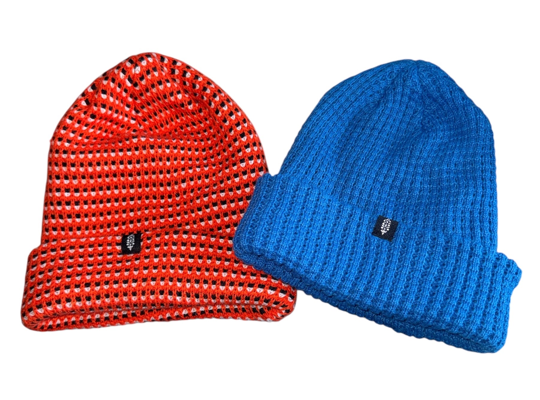 Free People women’s 2PC Cool Down waffle knit sweater beanie hat in orange mixed knit and bright blue, both ONE SIZE FITS MOST.