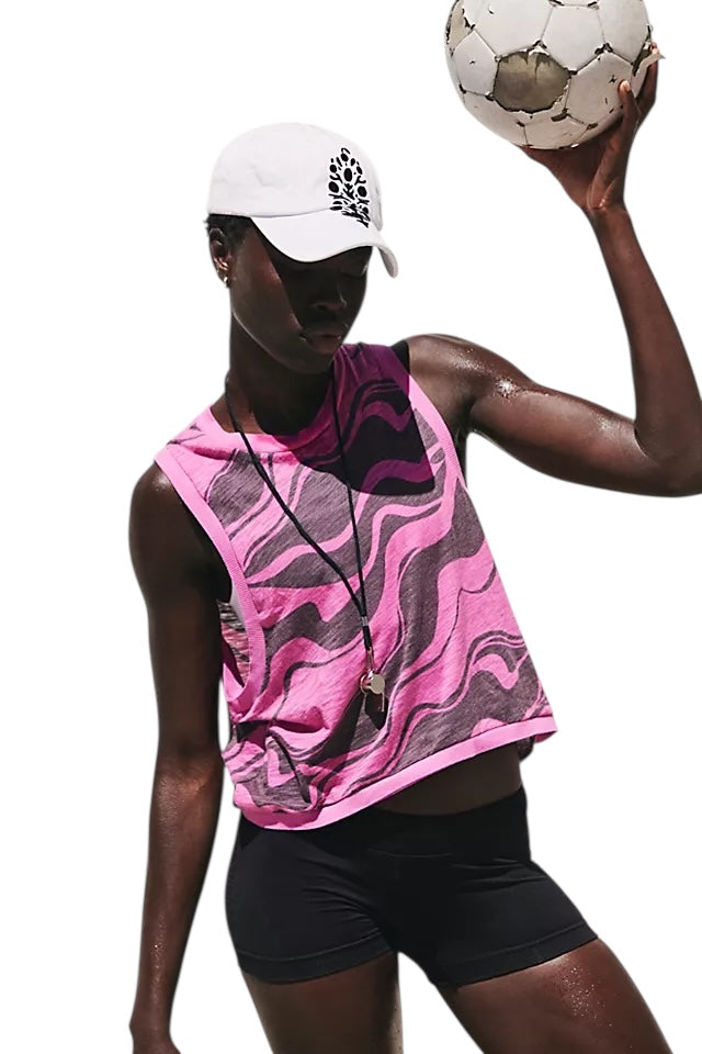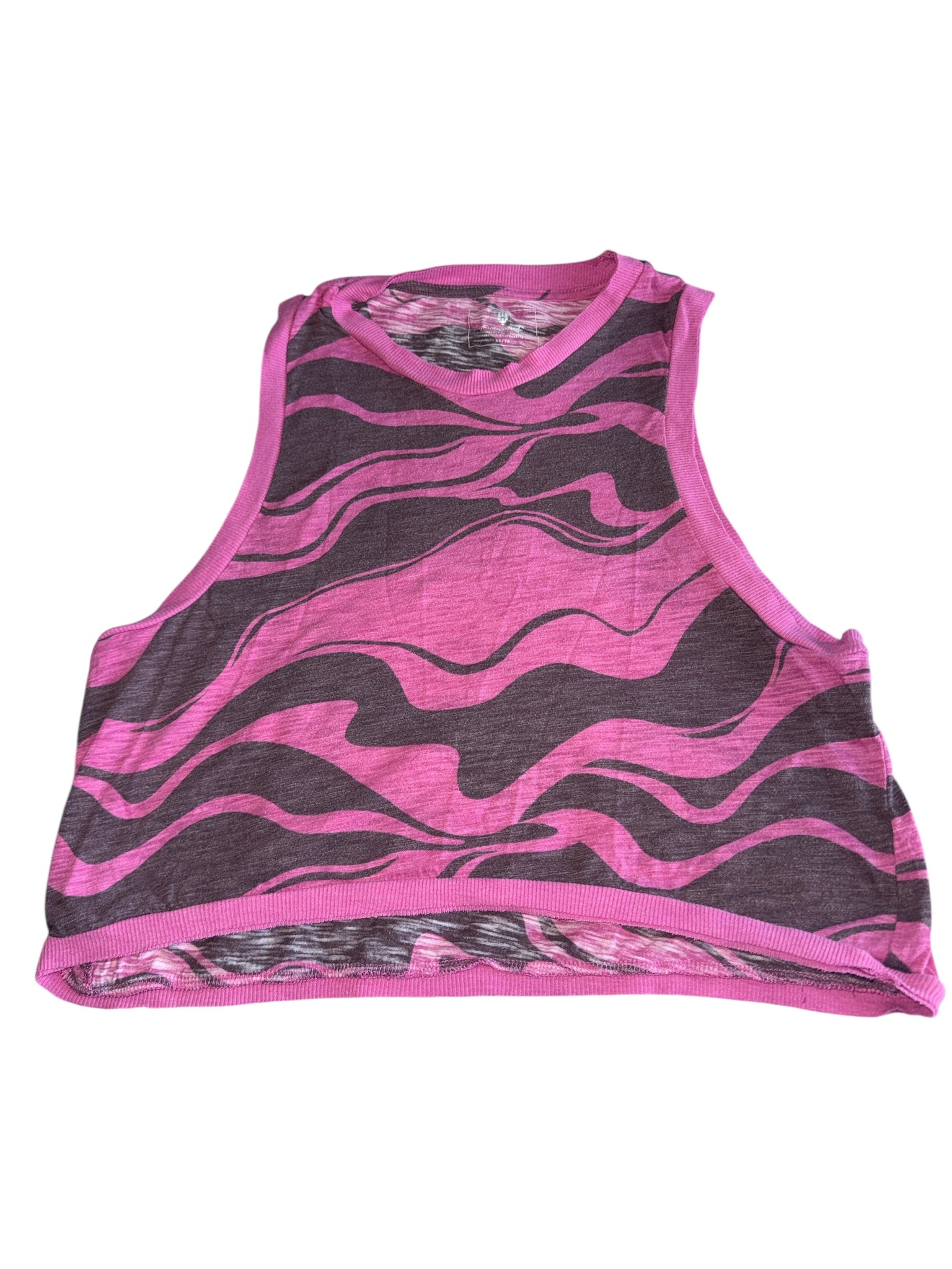 Free People Movement women’s wide arm hole cropped burnout printed Love tank top, size XS.